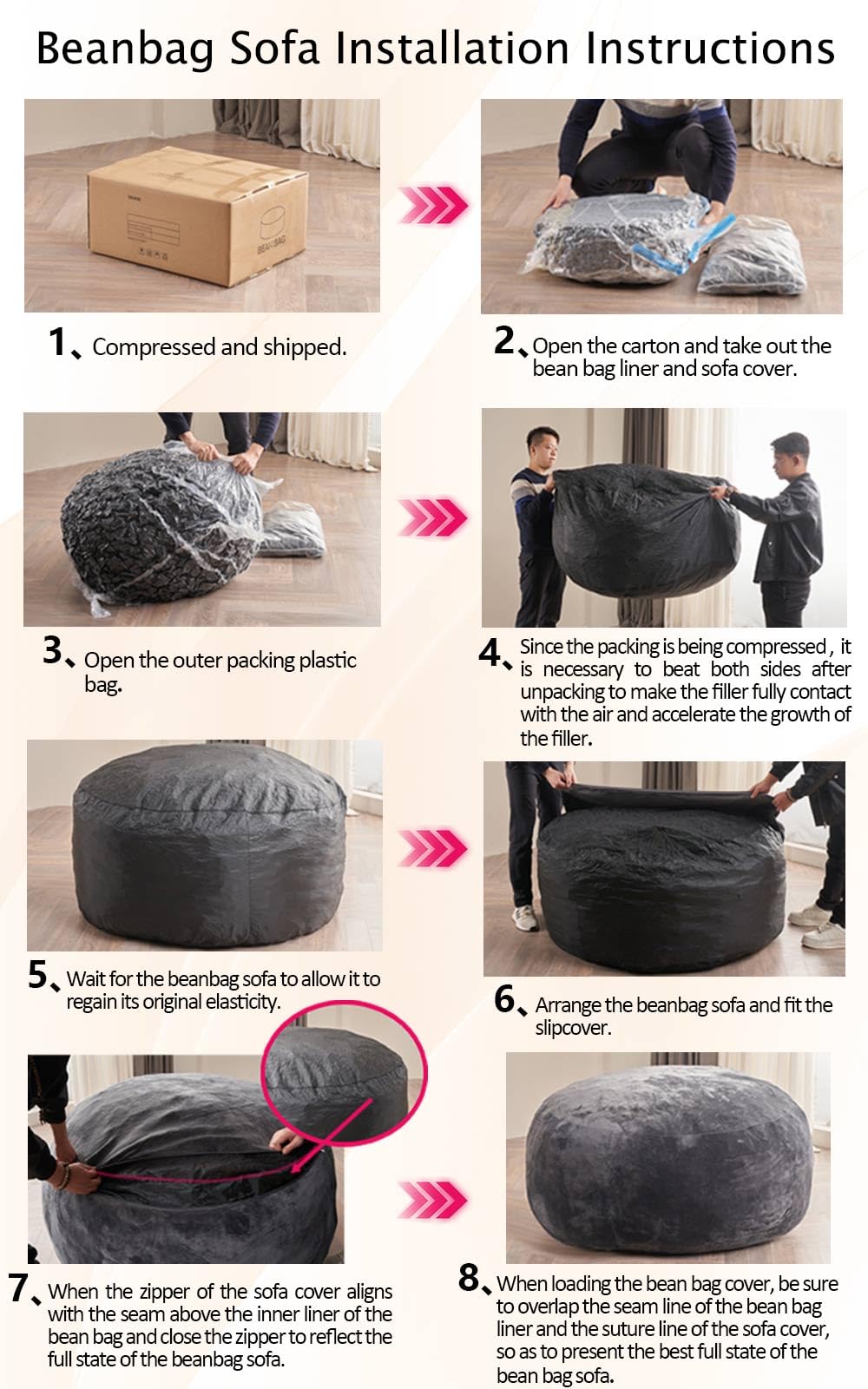 - High Resilience Memory Foam: Unlike other common crushed sponges, this bean bag chair is padded with fluffy premium memory foam, making it easy to rebound and achieve maximum softness. It comes in a compression box. Once opened, the bean bag filling will begin to swell within a few minutes. It takes 3-6 hours to become more supportive. After using it for a while, shake the entire bean bag and it will bounce back comfortably.