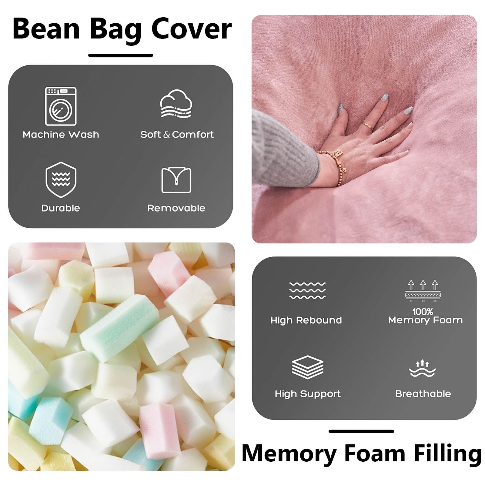 6FT,Big Bean Bag Chairs for Adults,Bean Bag Chair with Filler,Memory Foam Chair,Removable and Washable Flannel Cover, Giant Bean Bag, Suitable for Living Room, Bedroom and Reading(Pink)