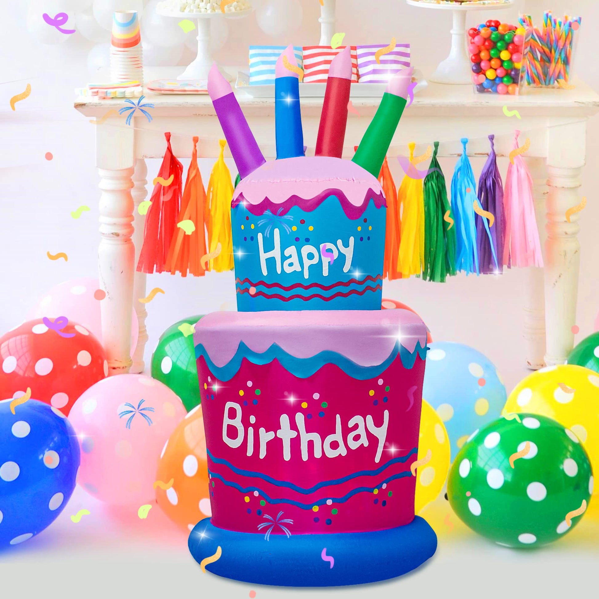 - The huge Birthday Inflatable Cake decorations hight 6 Foot,It is perfect for your birthday outdoor party, yard, garden, lawn, birthday night event decoration.
