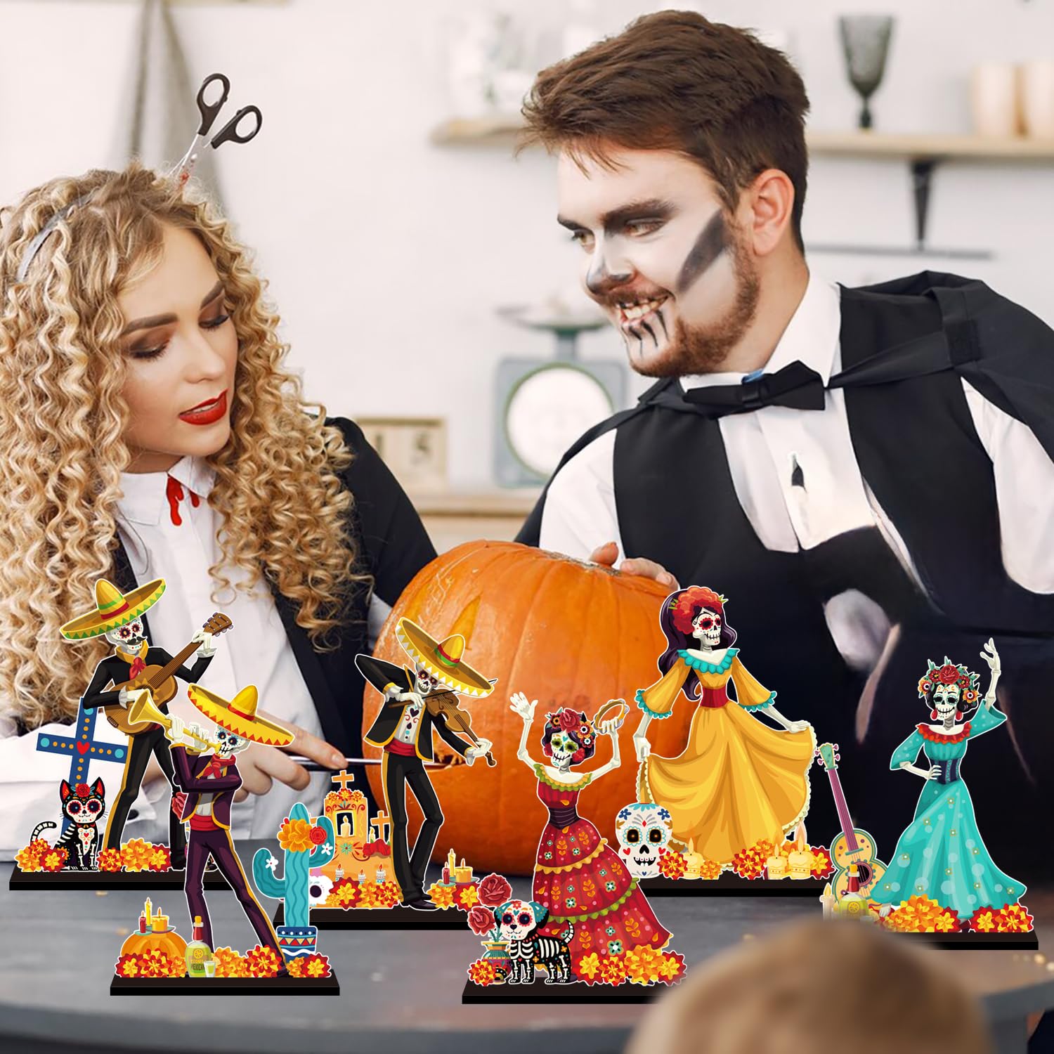 - High-Quality: This Dia De Los Muertos decorations table wooden centerpiece is made of durable and eco-friendly natural wood, sturdy and long-lasting, with smooth edges, vivid printing, safety and reliability, and is not prone to cracking, fading or warping. Our Day of the Dead decorations can be used continuously for multiple celebrations, bringing you and your family or friends a wonderful experience