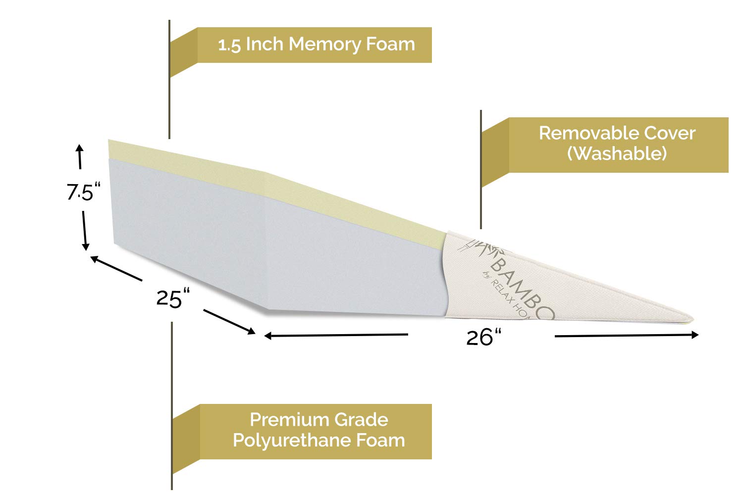 - Two-layer design - Ergonomically designed for maximum comfort and positioning. The triangle shape, is made of an 1.5” memory foam top layer for better comfort. It molds and aligns to any sleeping style, including stomach, back, and side sleepers. The bottom layer is a firm base foam which can help provide support you need when your torso is elevated.