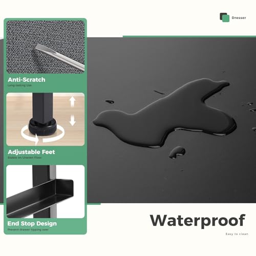 - Drawer Dresser with Sturdy Frame & FeetThis dresser set for bedroom is built with a sturdy metal frame to ensure stability. It is equipped with 4 adjustable feet to safeguard your floor from scratches, and you can effortlessly balance the dresser in tight spaces.