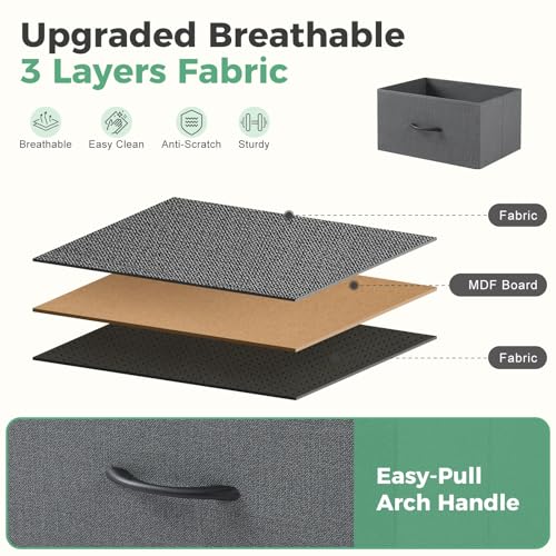 - Material:This fabric dressers for bedroom is made of cationic materials, all other sides and gaps are made of breathable, and non-woven synthetic fiber, harmless and wear-resistant, suitable for kids, teens, and adults.