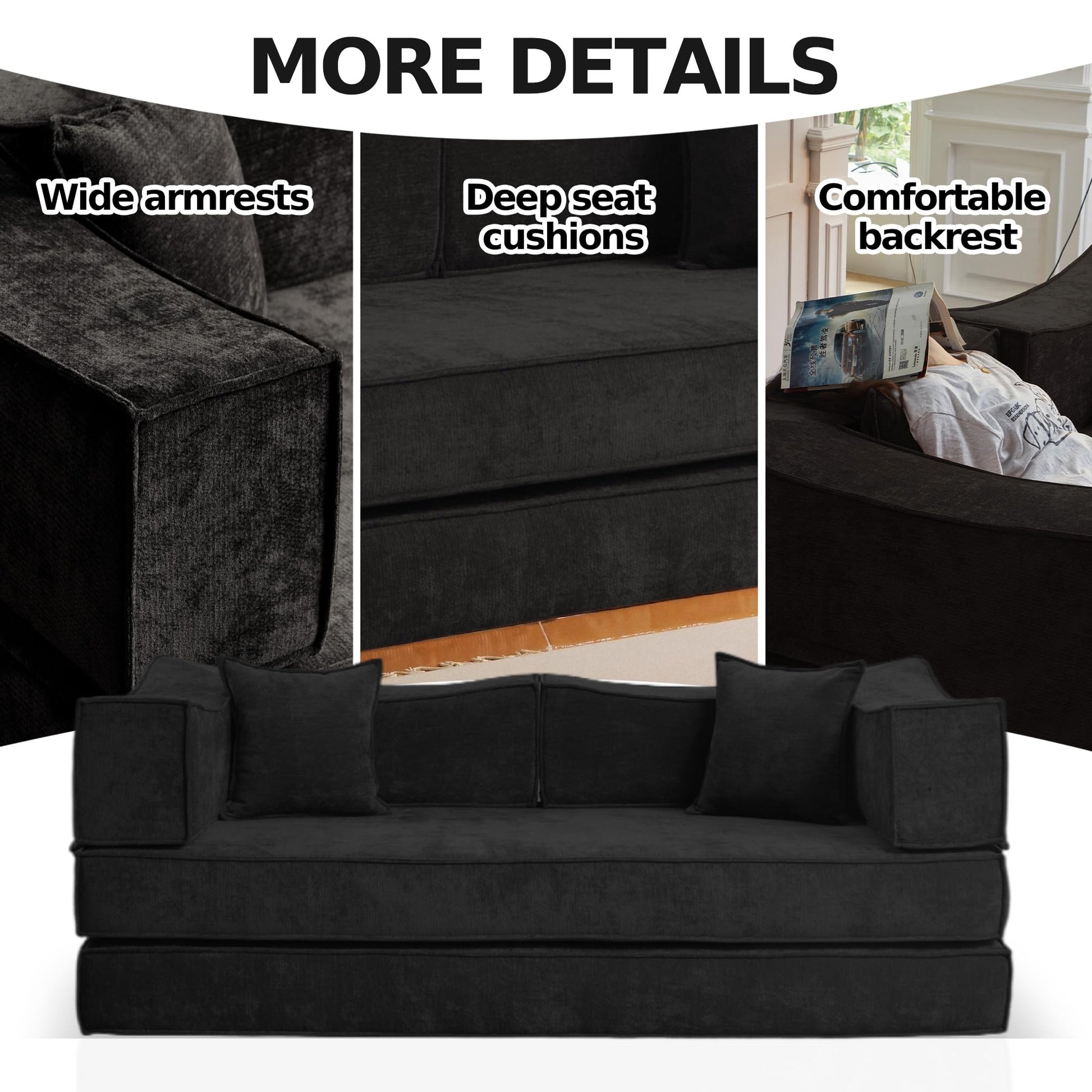 78.8''Convertible Floor Sofa Bed Combination Modular Boneless Couch Compression Sofa Couch Foldable Lazy cama for LivingRoom,Bedroom(Black)