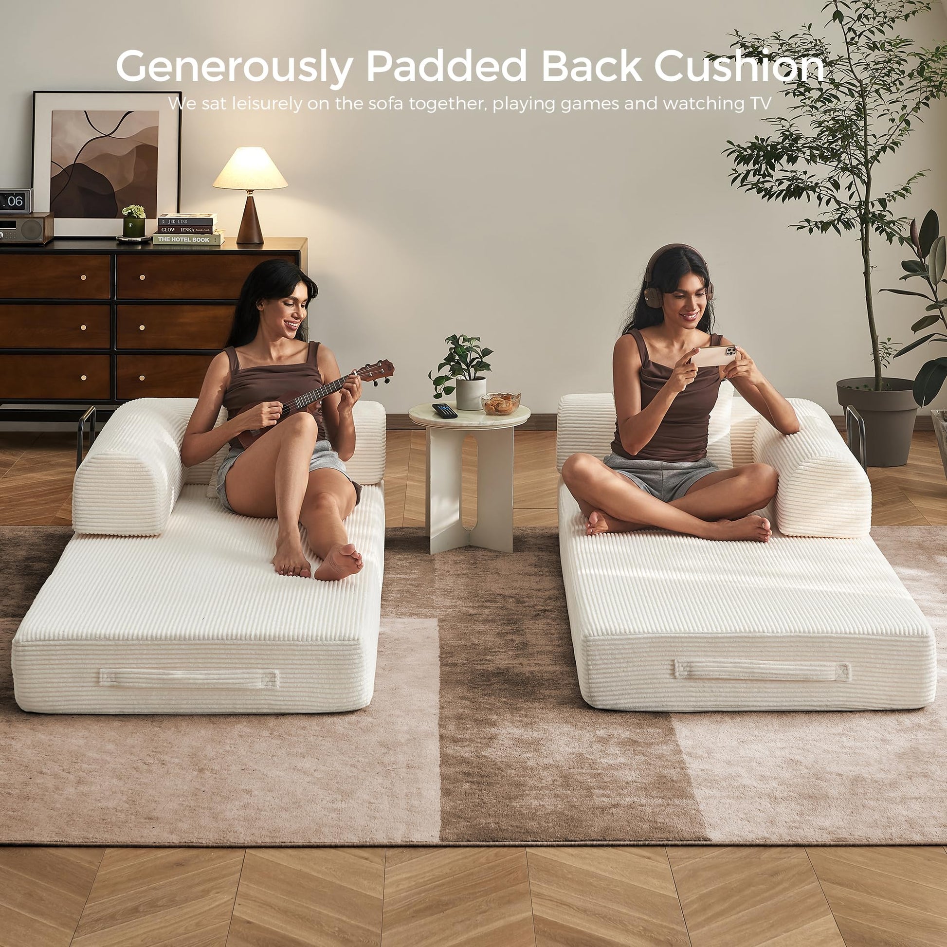 - 5-in-1 Convertible Modular Sofa: Tired of bulky furniture trapping your space? Our Floor Sofa Bed unleashes your creativity, breaking traditional sofa limits! Freely adapt removable armrests, backrest, and base to create a 3-Seat Sofa/Oversized Sleeper Bed/Lounge Recliner/Game Chair/Custom Sectional, perfect for living rooms, dorms, and game rooms — whether hosting guests or enjoying movie nights with family!