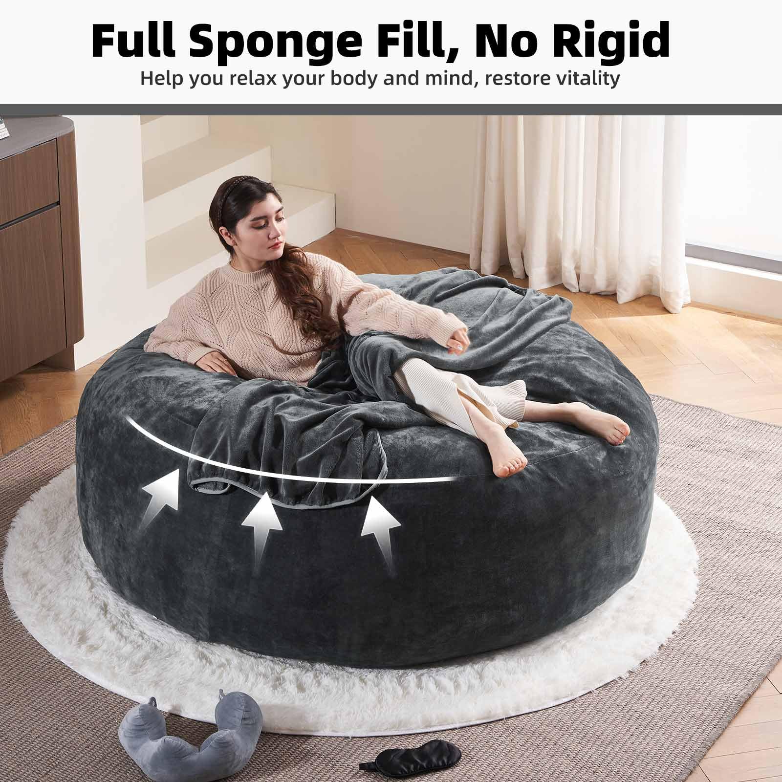 7FT,Oversized Bean Bag Chairs for Adults,Bean Bag Chair with Filler Included,Giant Bean Bag Chair Covered with Flannel Cover, Living Room Furniture, Suitable for Bedroom and Dormitory. (Dark Gray)