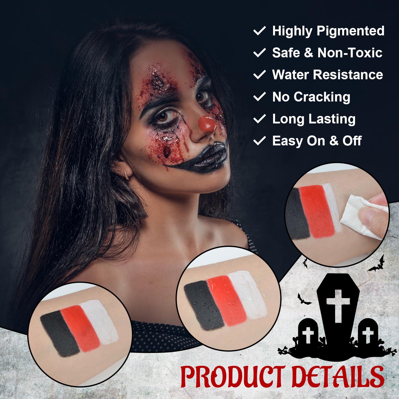 7PCS Halloween SFX Special Effects Makeup Kit, SFX Makeup Kit Include 3 Colors Clown Makeups Face Body Paint, Scar Wax,Fake Blood,Spatula,Brush,2PCS Stipple Sponges for Halloween Cosplay Costume Party