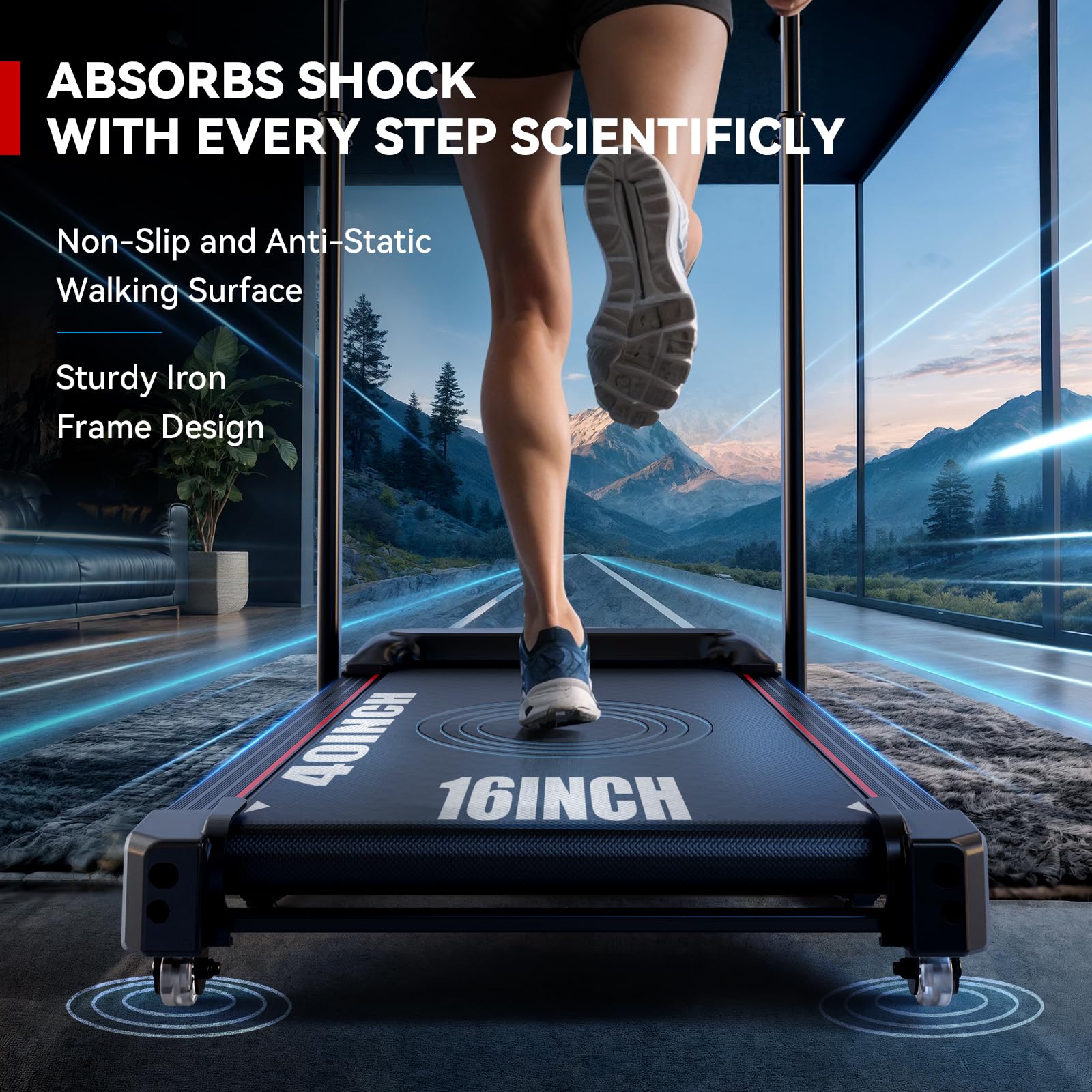 - [16" Wider Belt & APP] This treadmill features an extra-wide running belt for maximum comfort and stability, along with a heavy-duty frame that keeps your runs smooth and secure. Stay connected with Bluetooth-enabled smart technology, syncing to your favorite fitness app for immersive, real-world running simulations.