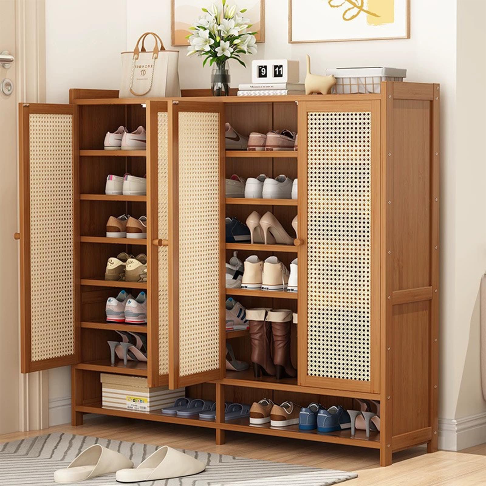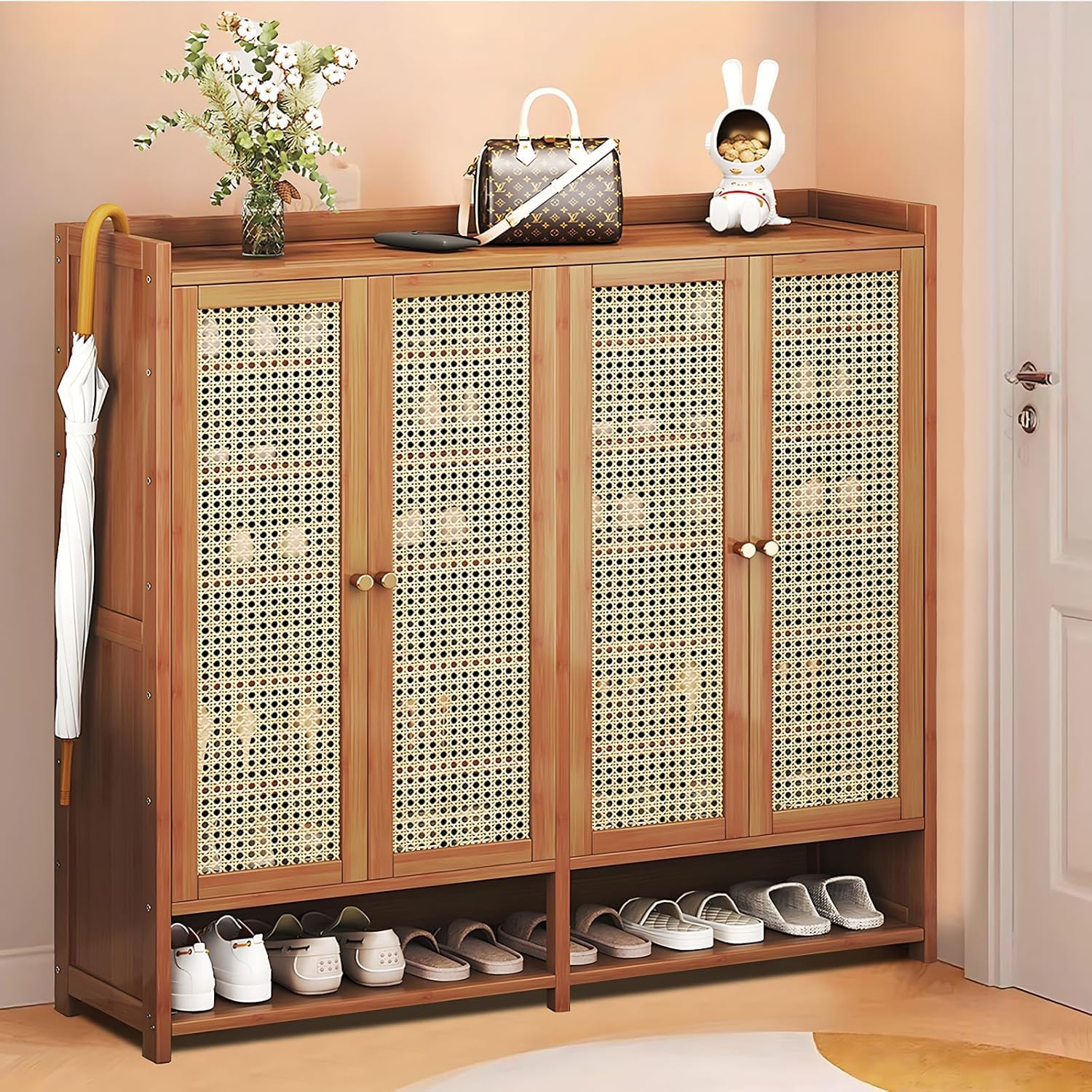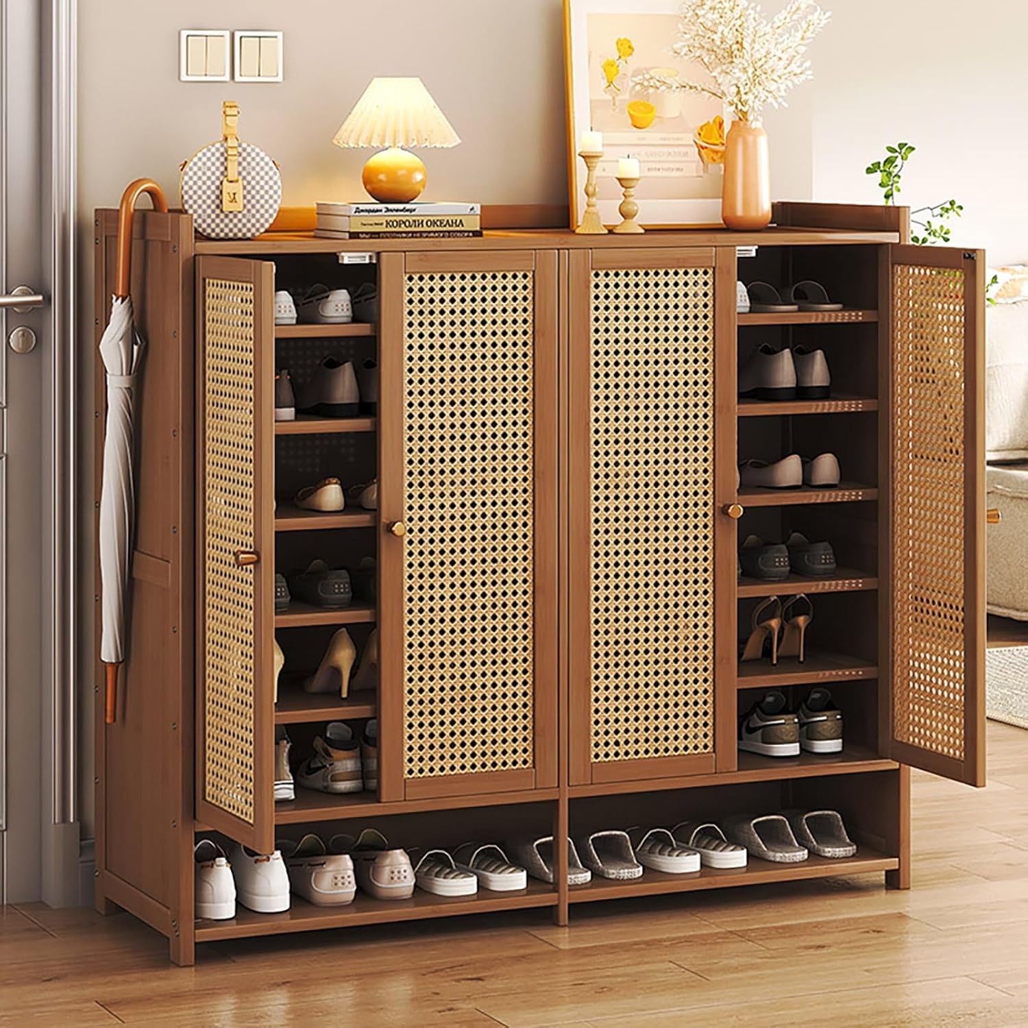 8 Tier Bamboo Shoe Cabinet, Shoe Storage Cabinet with Doors, 40 Pairs Shoe Organizer with Shelves, Freestanding Shoe Rack for Entryway, Hallway, Closet Living Room (Brown-)