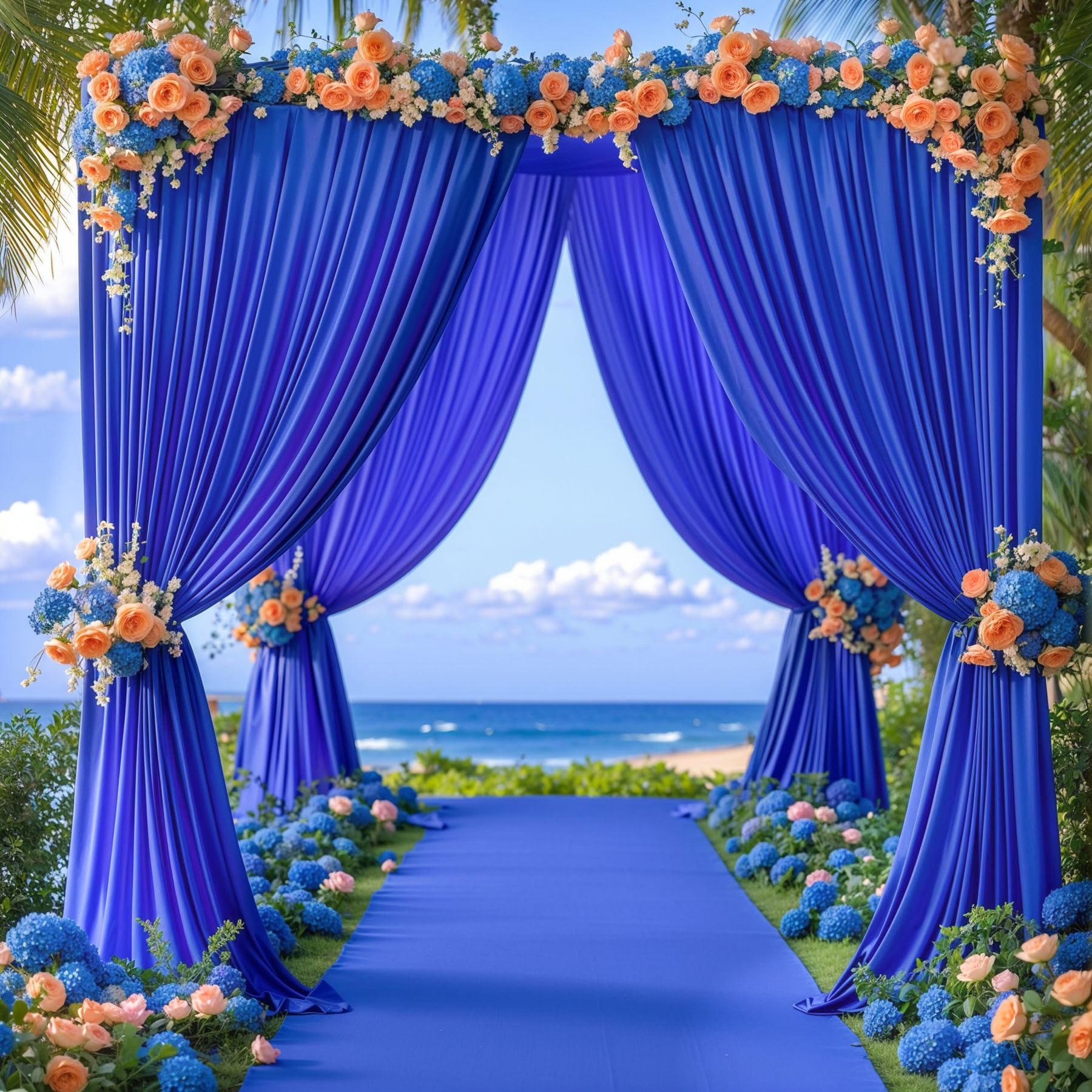 - 【Royal Blue Backdrop Curtains Packages】You will receive 2 panels royal blue wedding backdrop curtains(Each panel size: 10'L X 4'W). The 4 inch rod pocket makes a simple installation without any damage to the curtain rod. The royal blue party curtains backdrop is perfect for covering walls elegantly with flowers or ballons.
