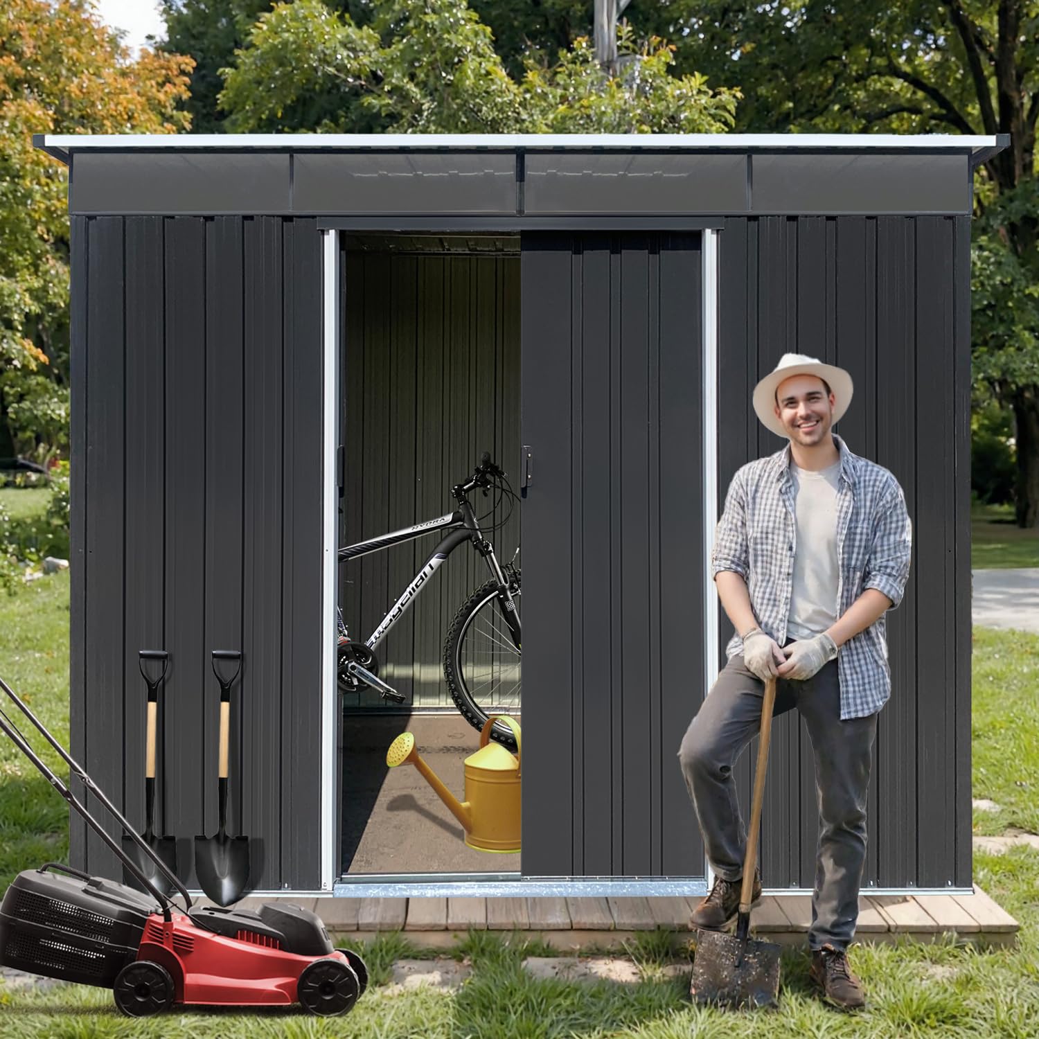 8 x 6 FT Outdoor Storage Shed, Metal Garden Tool Shed with Slooping Roof, Lockable Doors and Aluminum Frames, Easy to Assemble for Garden, Patio, Lawn, Black