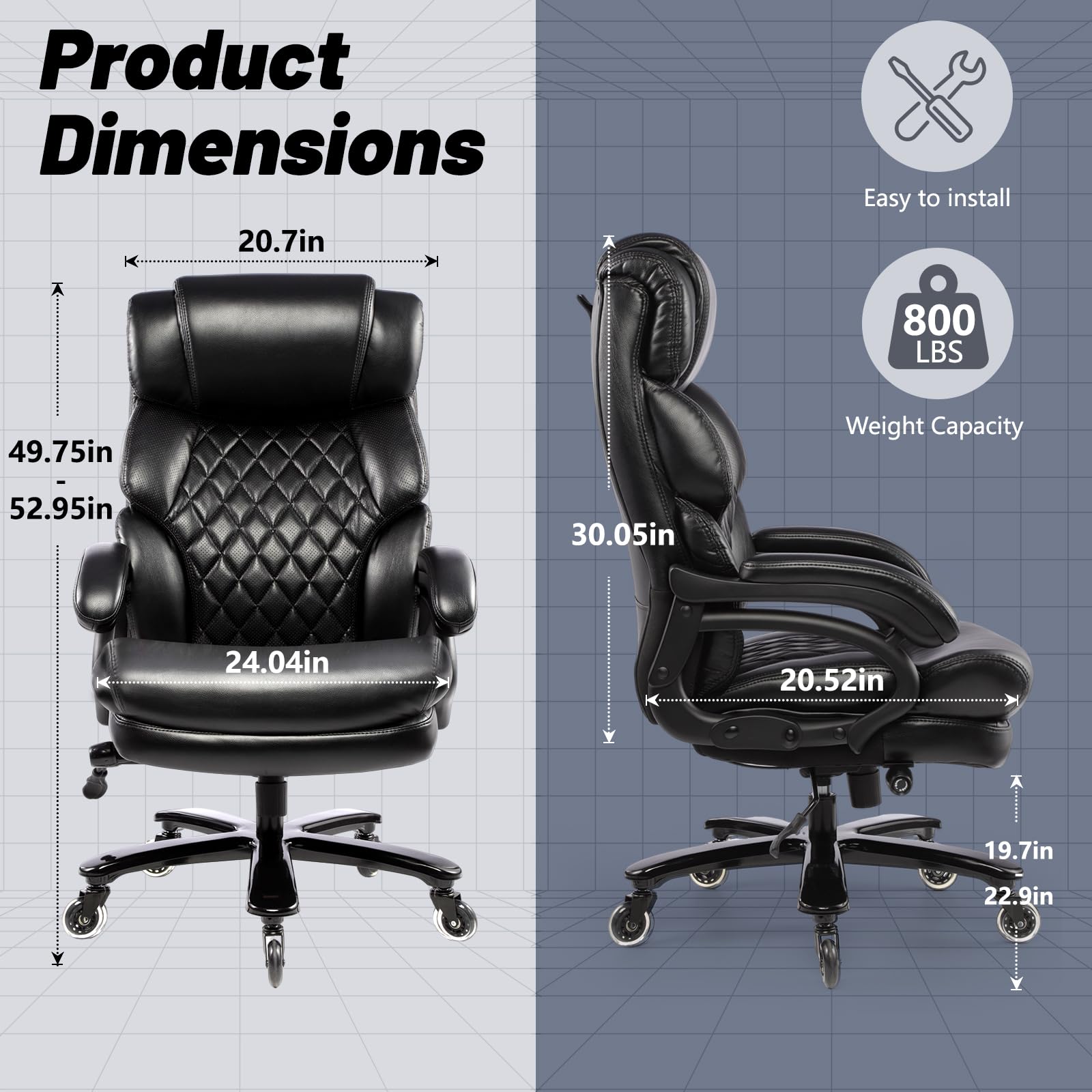 800LBS Big and Tall Office Chair for Heavy People, Heavy Duty Executive Chair with High Back, Extra Wide Seat and Adjustable Lumbar, Large Computer Desk Chair Comfortable for Home Office (Black)