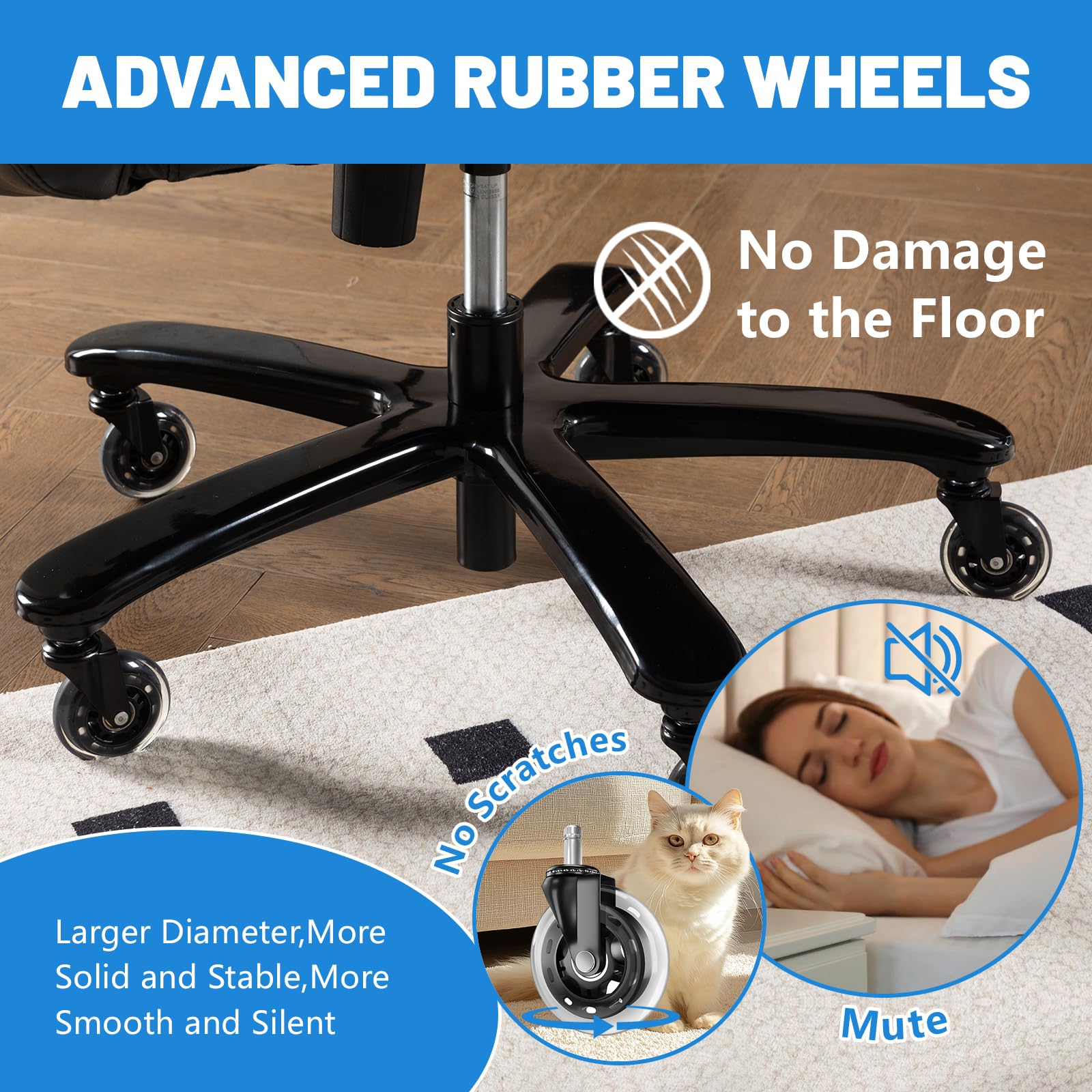 - đăProtect your Floors and your Moneyă Executive Office Chair equipped with 360 swivel PU casters reduce rolling resistance Stop damaging your expensive hard wood floors. Many chair wheels use cheap, low quality materials that destroy your flooring. We don't. Encased with soft, polyurethane material our new style wheels are guaranteed not to scratch or leave marks on any surface. So feel free to finally toss that old computer chair floor mat!