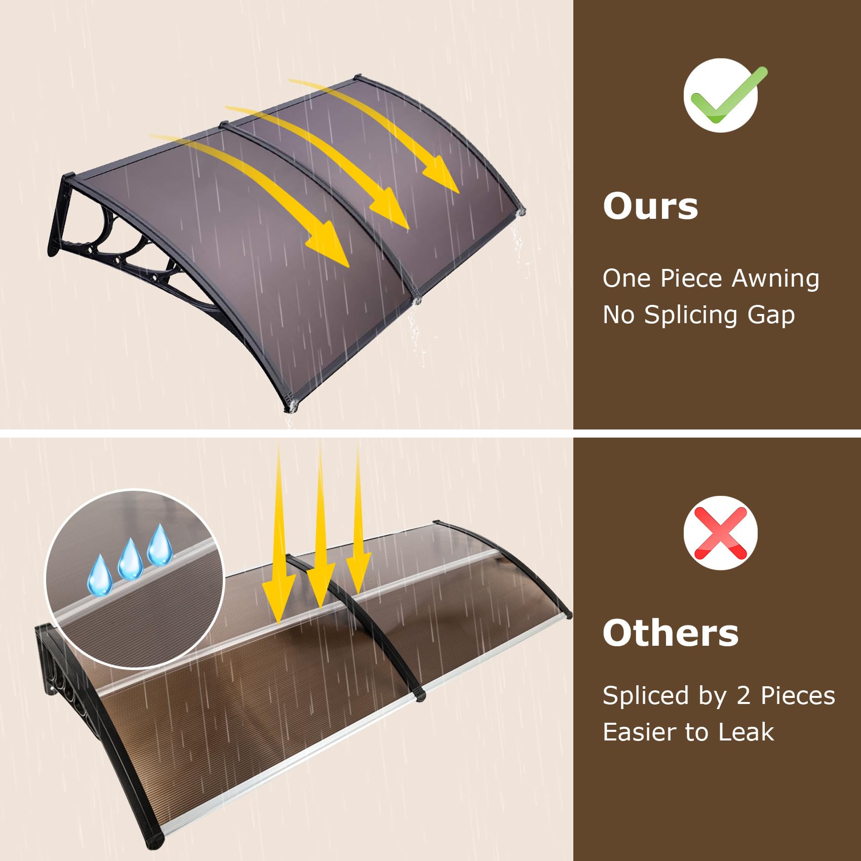 - ๐ ๐๐ข๐๐ ๐๐ฉ๐ฉ๐ฅ๐ข๐๐๐ญ๐ข๐จ๐ง: With a neutral brown hue, this awning for door entrance seamlessly blends with various home and outdoor settings. Perfect for porches, windows, patios, and garages, it provides reliable protection from the elements. This modern awning canopy creates a comfortable sheltered space, allowing you and your family to enjoy the outdoors in any season.