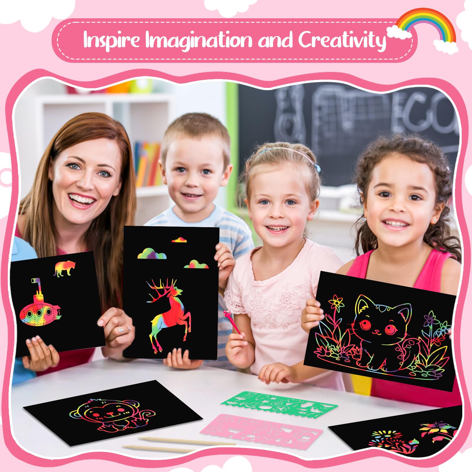 - 【Inspire Imagination and Creativity】Watch as children scratch off the black coating to bring hidden colors to life! Great for developing fine motor skills, artistic expression, and hours of screen-free fun.