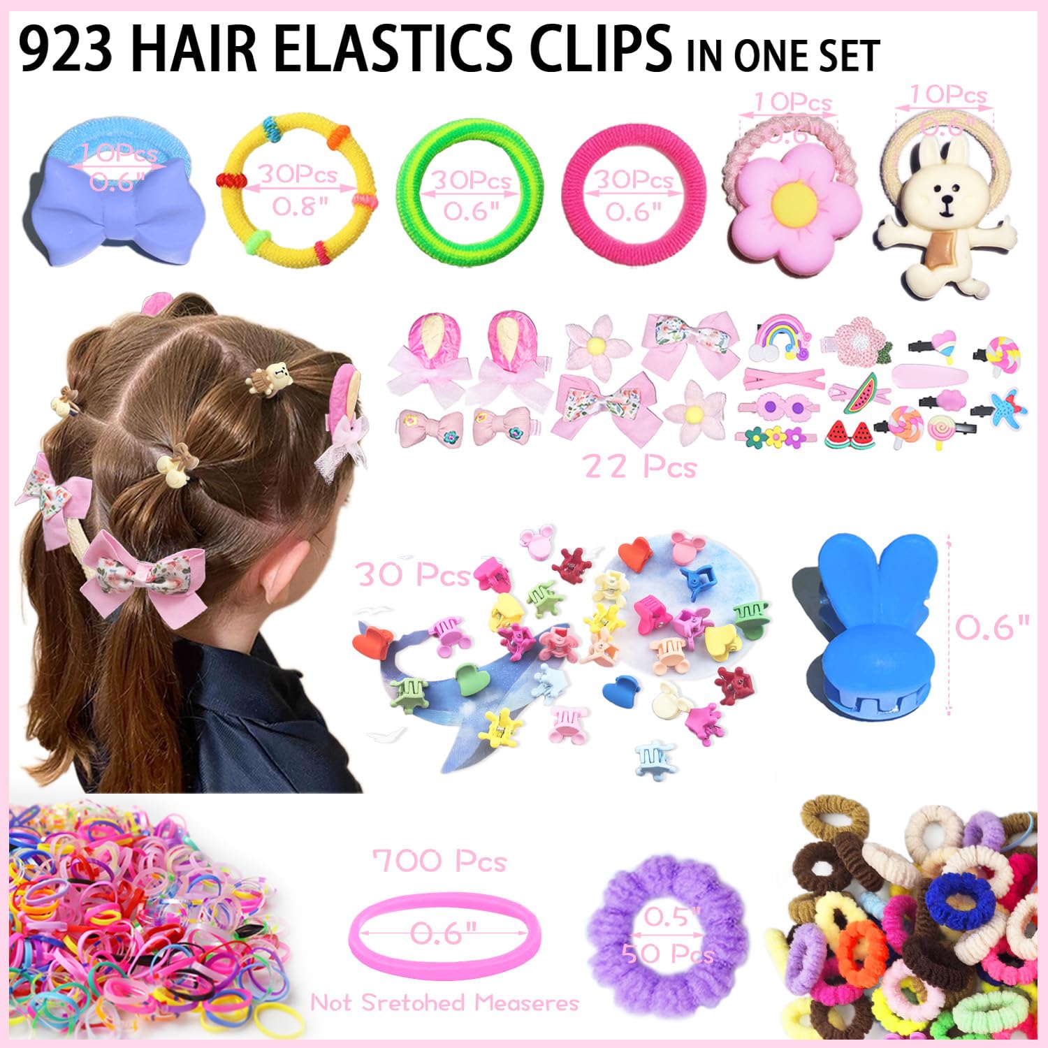 - Massive Value Pack: This set contains 923 pieces of little girls hair accessories, including cotton elastic hair ties, soft rubber bands, bows hair clips, and bunny hair claws;The number of toddler hair accessories is enough to use and share with family and friends for a long time;never worry about your daughter get hairbands lost or get dirty