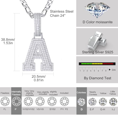 925 Sterling Silver 26 Letters Alphabet Pendant Necklace - Moissanite Initial Necklace for Women, Dainty Personalized Jewelry Gift for Her, 18"+2" Adjustable Chain (Letter A)