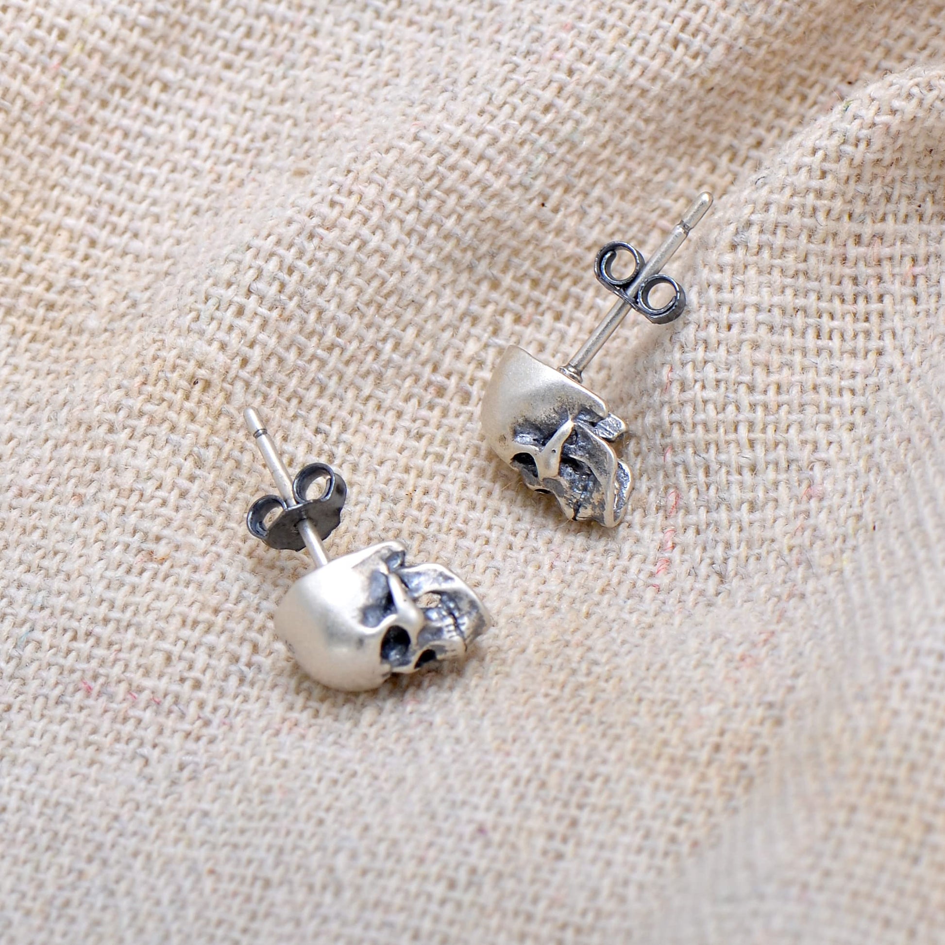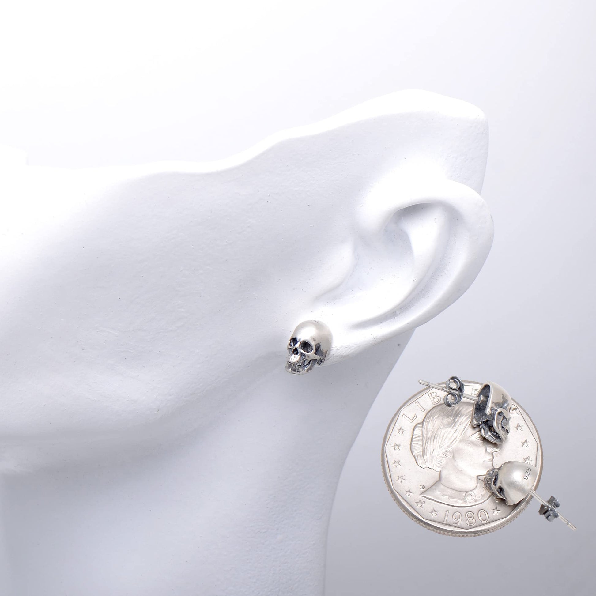 - The earring is crafted into a realistic human head skull shape, small size about 6*10mm, standard silver post and backs