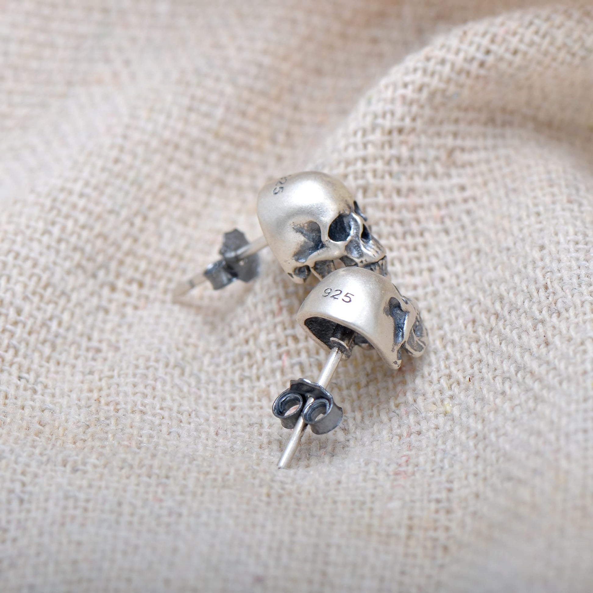 - This pair of human skull earrings are made in hypoallergenic 925 sterling silver solid metal, antique oxidized finishing