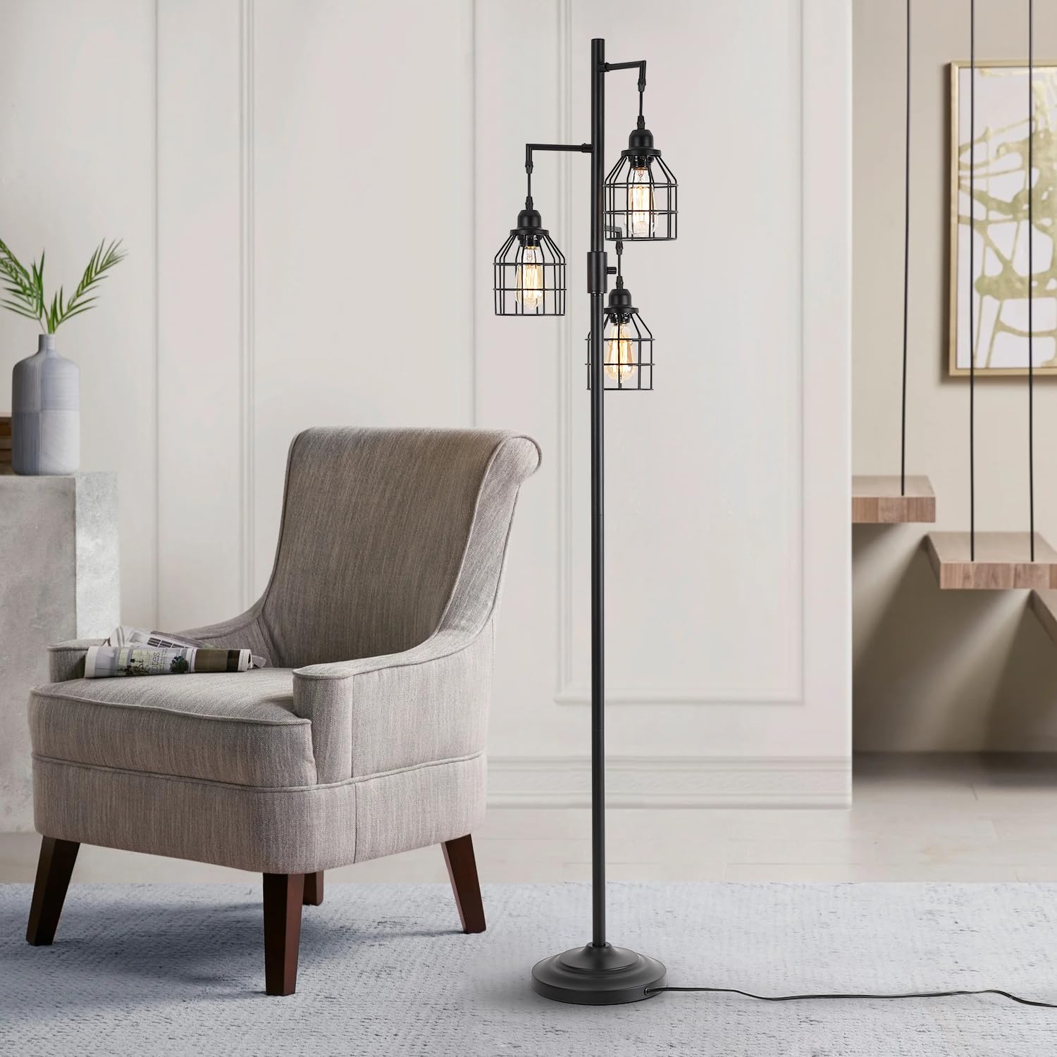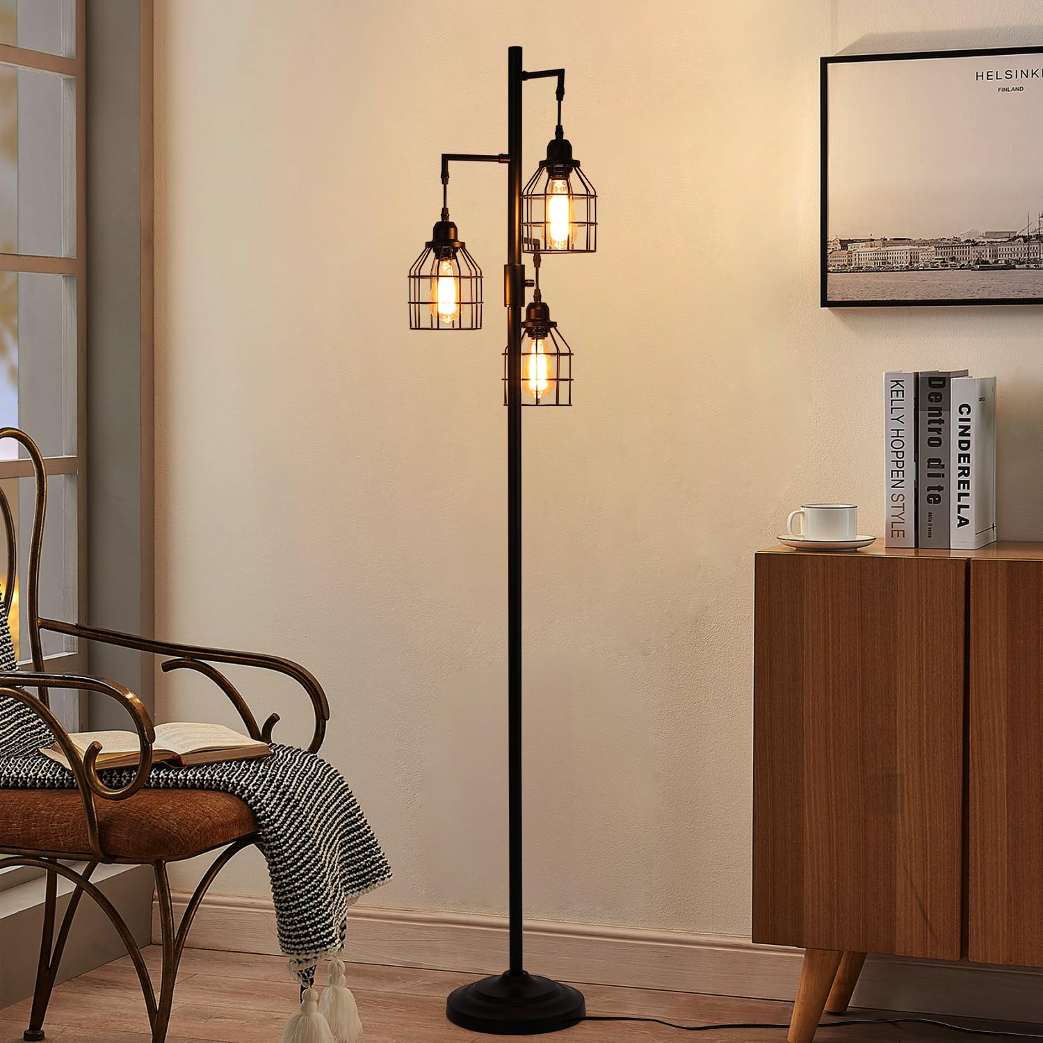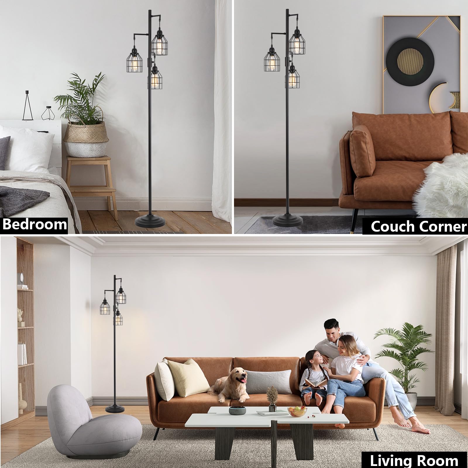 9MMML Floor Lamp for Living Room, Farmhouse Industrial Dimmable Floor lamp,3 Lights Metal Cage Tree Standing Lamp,68", 3Pcs Led Bulbs Included