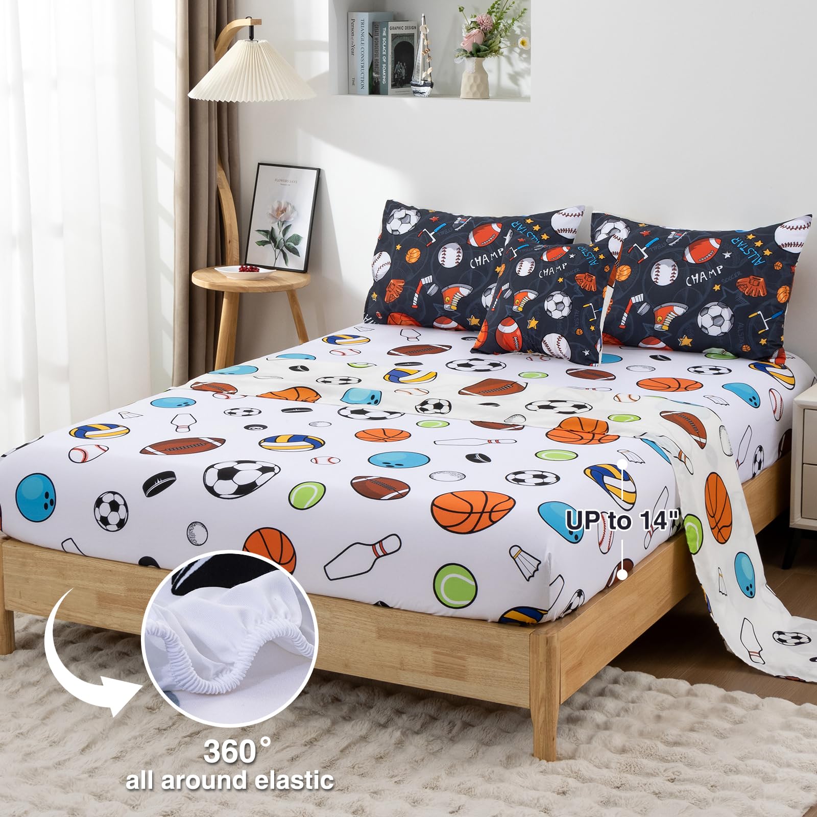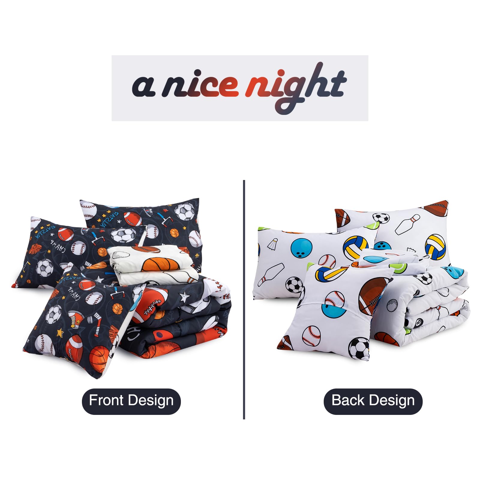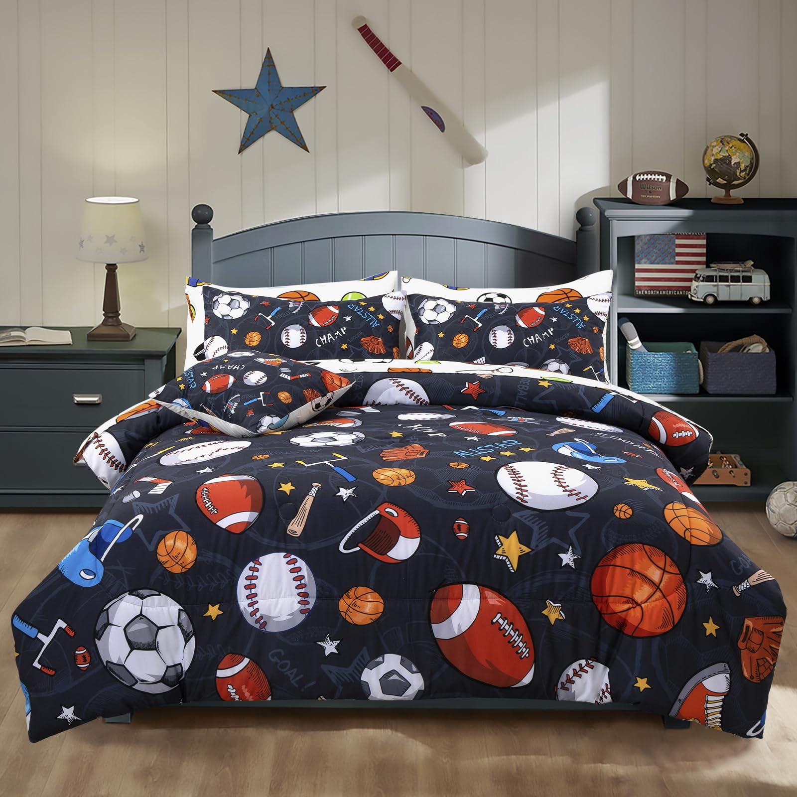 • 【Design】The comforter's is designed with various sports items, soccer football rugby basketball champ and gloves on grey background.The unique comforter set gives your bedroom a stylish decoration, suitable for any room in your house - bedroom, guest room, children's room, vacation room, make your bedroom look like it's in a magazine.