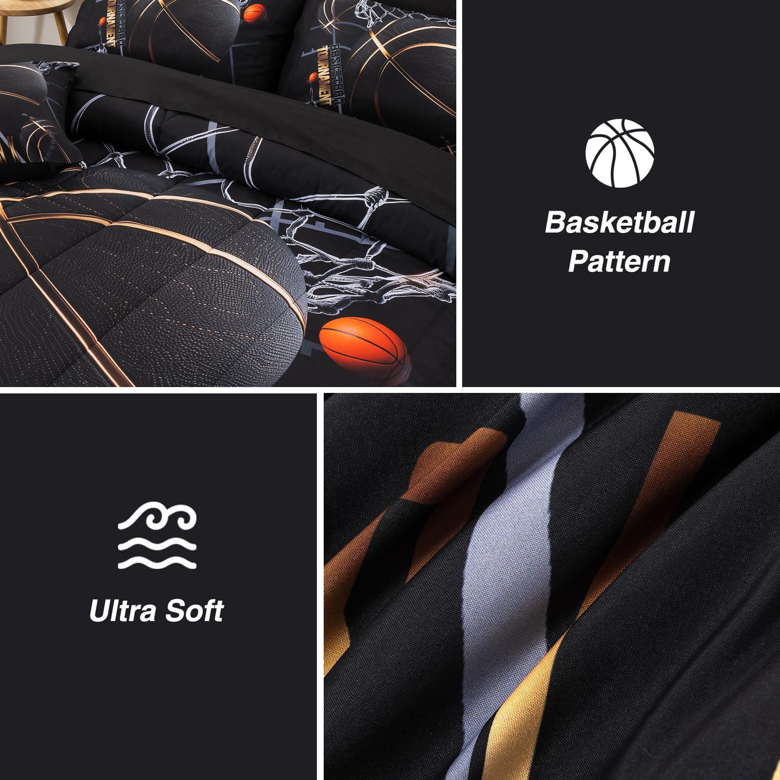 - 【Unique Design】Sportsman slam dunk printed on black background, coordinating with adorable pillowcases for a complete look.The unique comforter set gives your bedroom a stylish decoration, suitable for any room in your house,which make kids will fall in love with this bedding at a glance.