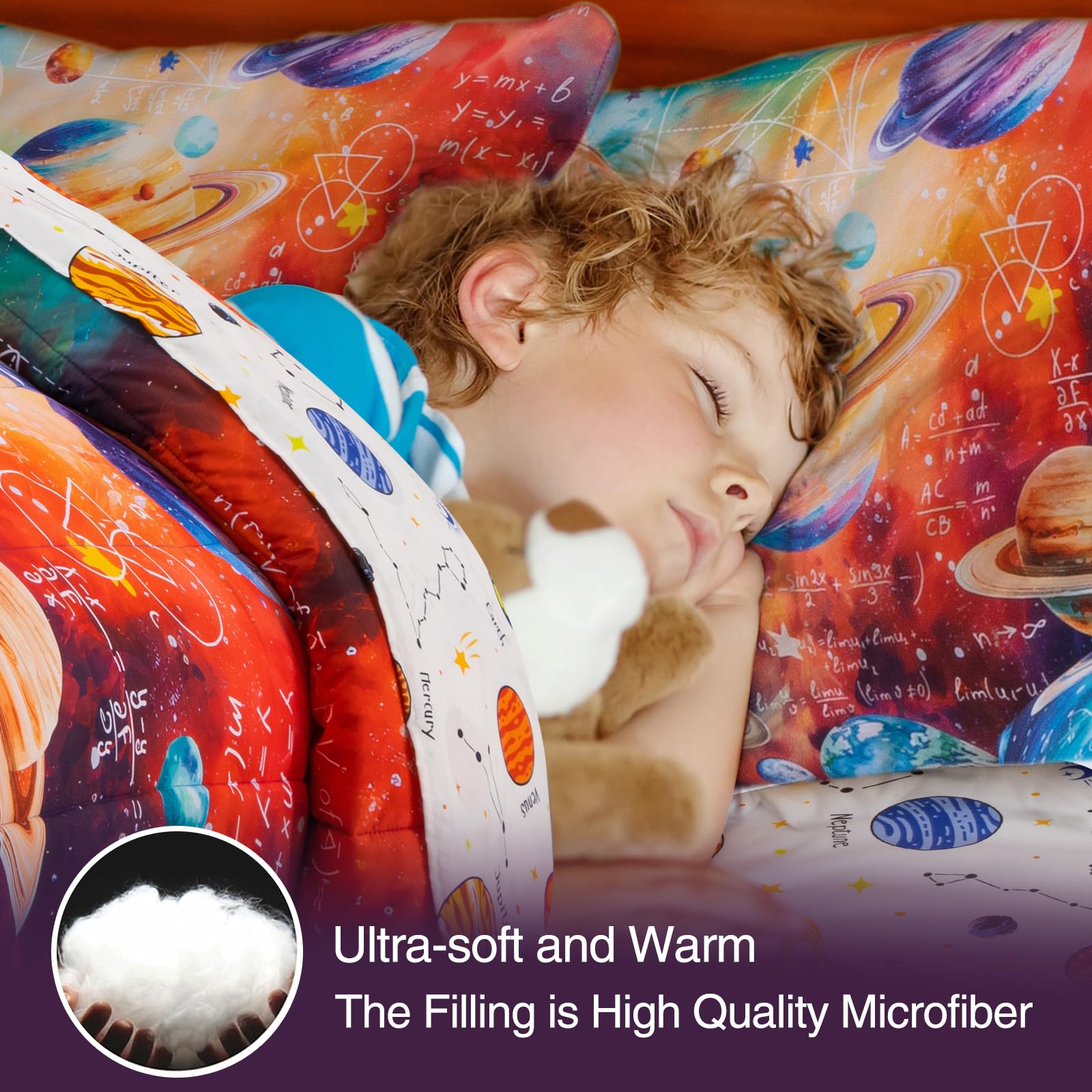 - 【 Design 】 Galactic Space is a trend of exploring the universe, suitable for children, adults or anyone who is curious about the universe. This soft cotton comforter can ensure longer durability and has better anti-shrinkage properties than cotton fabrics. Our comforters are printed with all kinds of patterns, combined with equations, making them look very mysterious and arousing people's desire to explore. It is not only a bedding item, but also a great gift for kids.