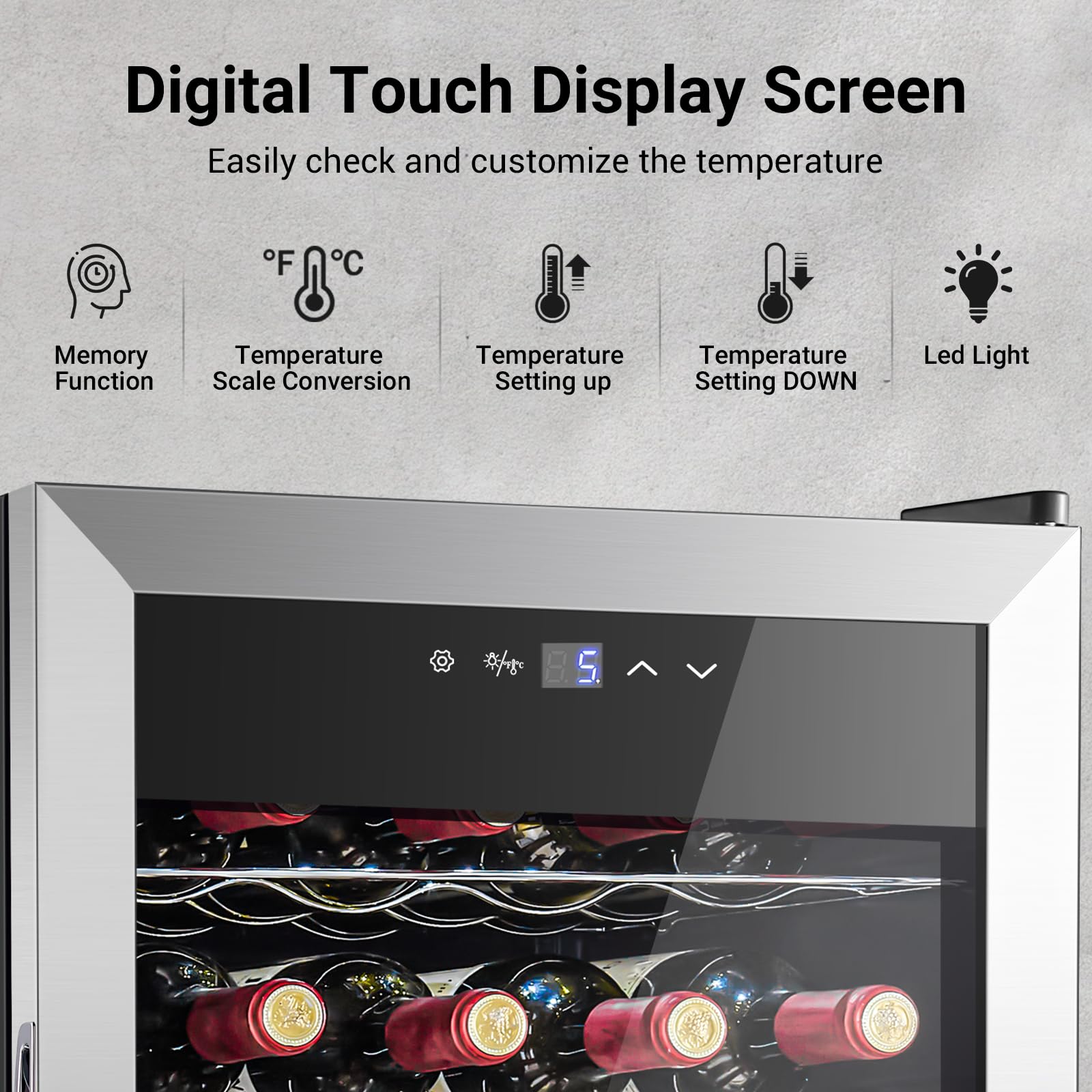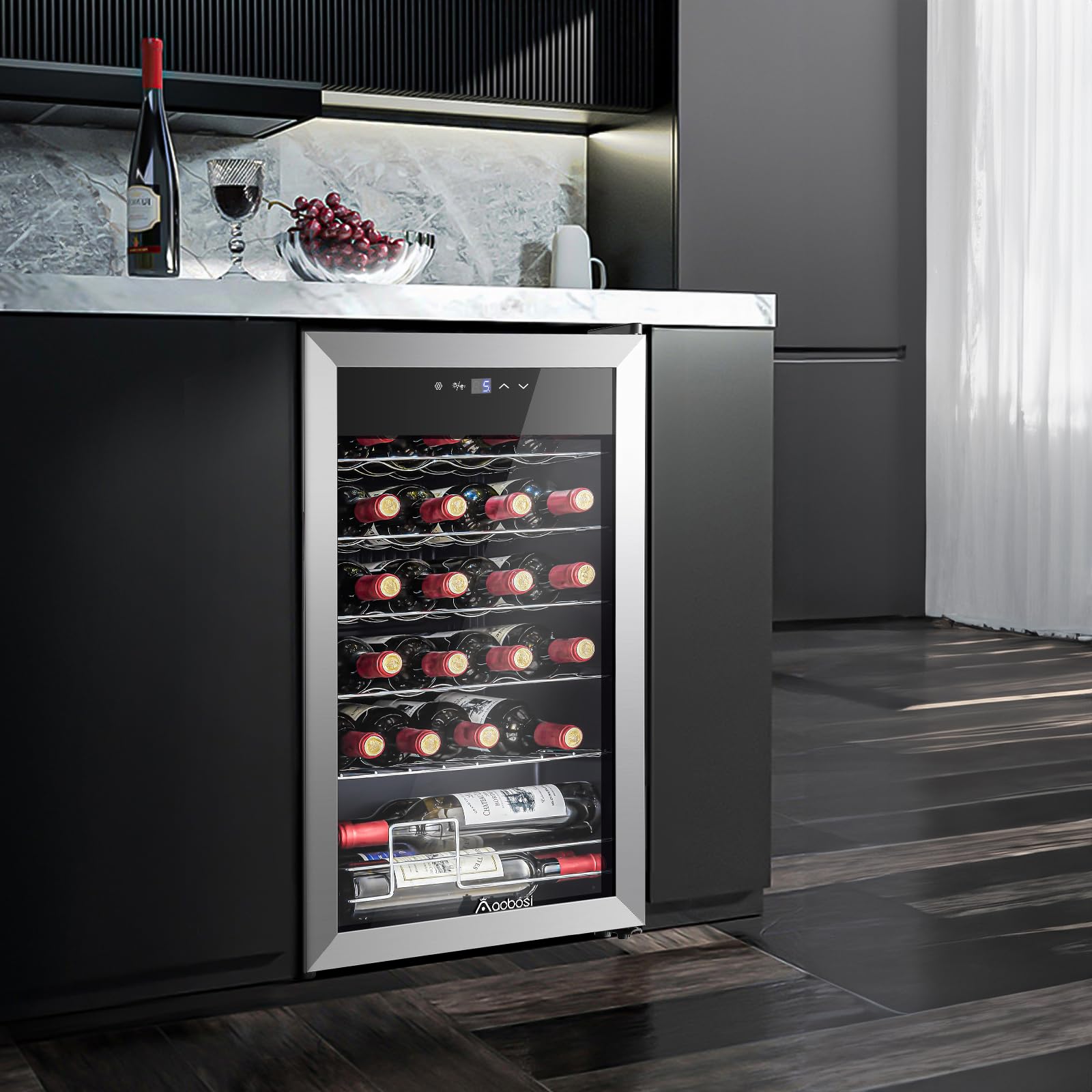 AAOBOSI 17 Inch Wine Cooler, 24 Bottles Wine Fridge, Wine Refrigerator Small with LED Display Light, Freestanding Wine Cellar with Low Noise Compressor, Adjustable Shelves