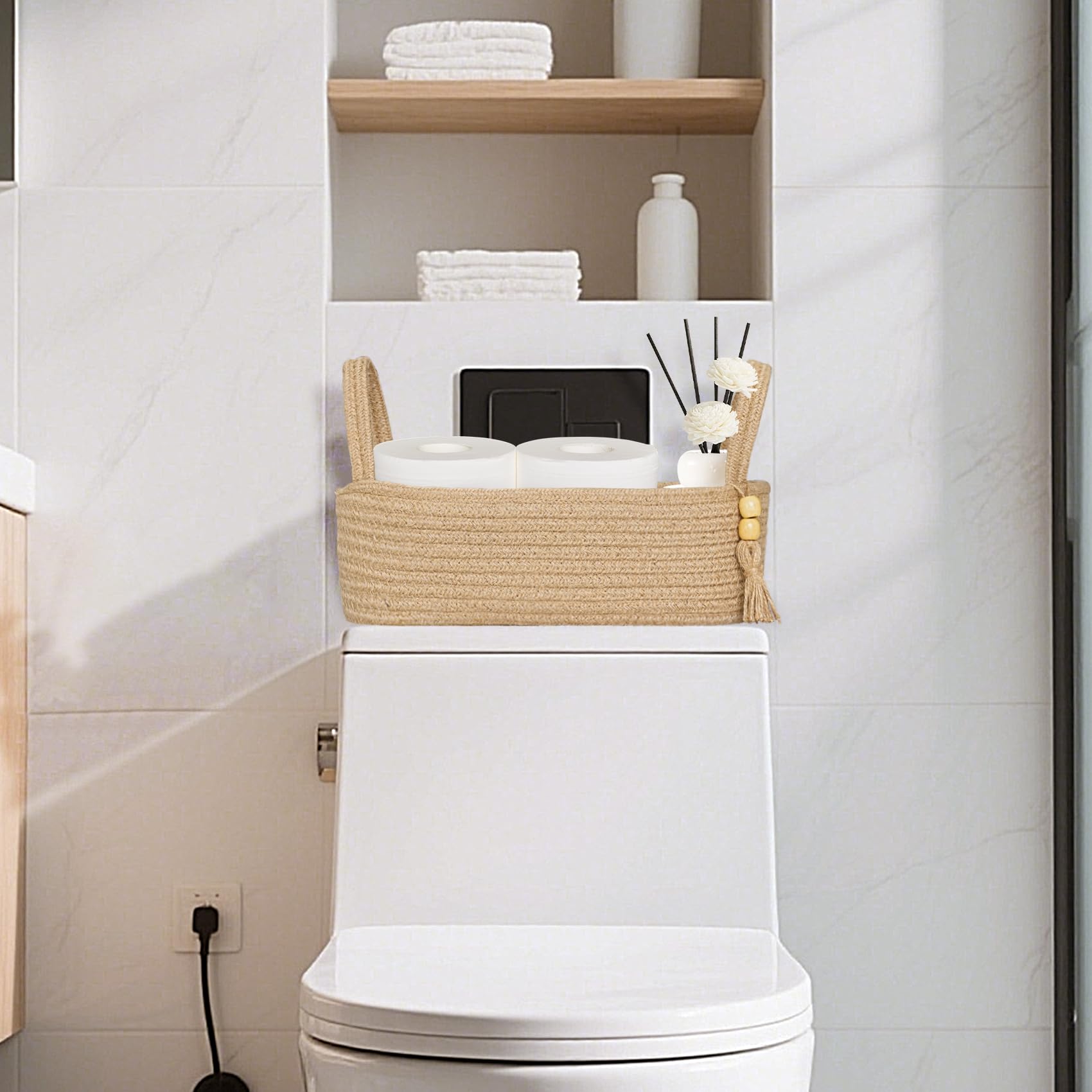 - Perfect Size & Versatile Use - 13x6x4 Inch Cute Storage Basket, perfect size for standard toilet tank tops. Holds 2 toilet paper rolls plus small decorative items, ideal for bathroom organization (Note: Check dimensions before purchase.)