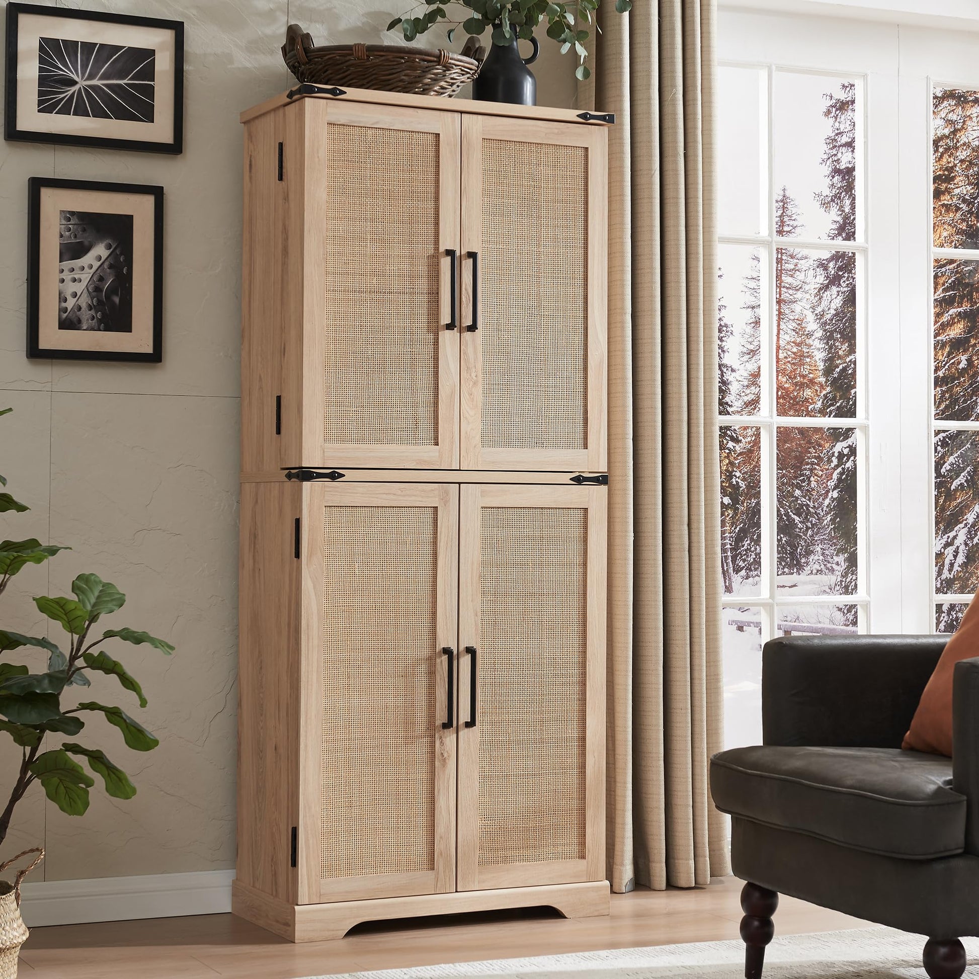 - Natural Rattan Elegance for Your Space: It’s time to get your house in order—organizationally and decoratively. Our cabinet exudes relaxed refinement with its natural oak finish and GENUINE RATTAN. Matte iron-toned metal accents add a sophisticated edge, enhancing its overall visual allure. This versatile cabinet has an airy, open feel with 6 roomy shelves, door shelves, and a mid drawer, providing ample storage for all your needs.