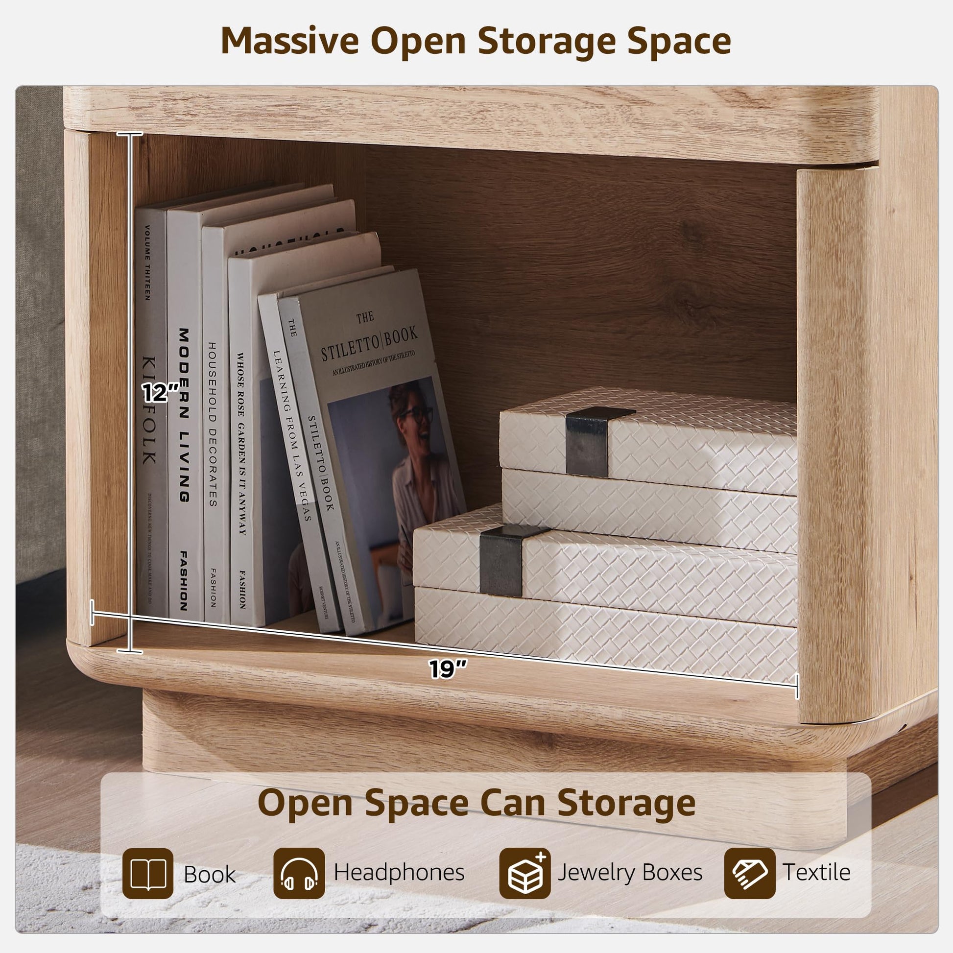 - WELL-ORGANIZED DRAWER & MASSIVE OPEN STORAGE:The ACCOHOHO modern wood nightstand features a smooth-gliding drawer designed for effortless access, offering ample space for daily essentials like notebooks, tissues, and skincare products. Below, a generous open compartment provides versatile storage - capable of holding 30-40 standard A5 books or easily accommodating textiles, jewelry boxes, and other personal items. The spacious tabletop serves as a perfect platform for table lamps, aromatherapy diffusers, or decorative accents. Combining practicality with modern elegance to enhance your living space.