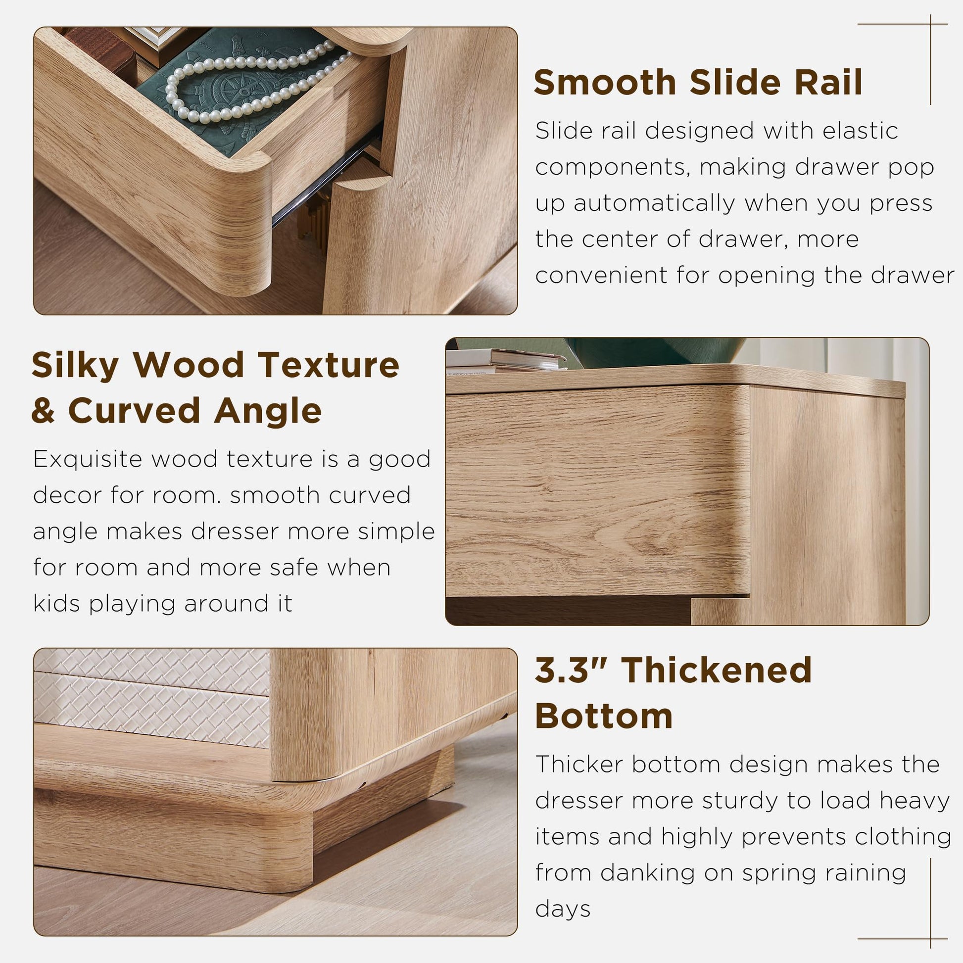 - MODERN 24" TALL NIGHTSTAND: Measuring 15.7"D x 22"W x 23.7"H, this stylish nightstand with drawers delivers exceptional storage capacity while keeping your essentials perfectly positioned for easy access from bed. Its contemporary woodgrain finish brings natural elegance to your space, creating a refreshing aesthetic that stands out. The smooth rounded corners enhance both safety and modern appeal, while contributing to an overall spacious feel that brightens and elevates your room's decor.