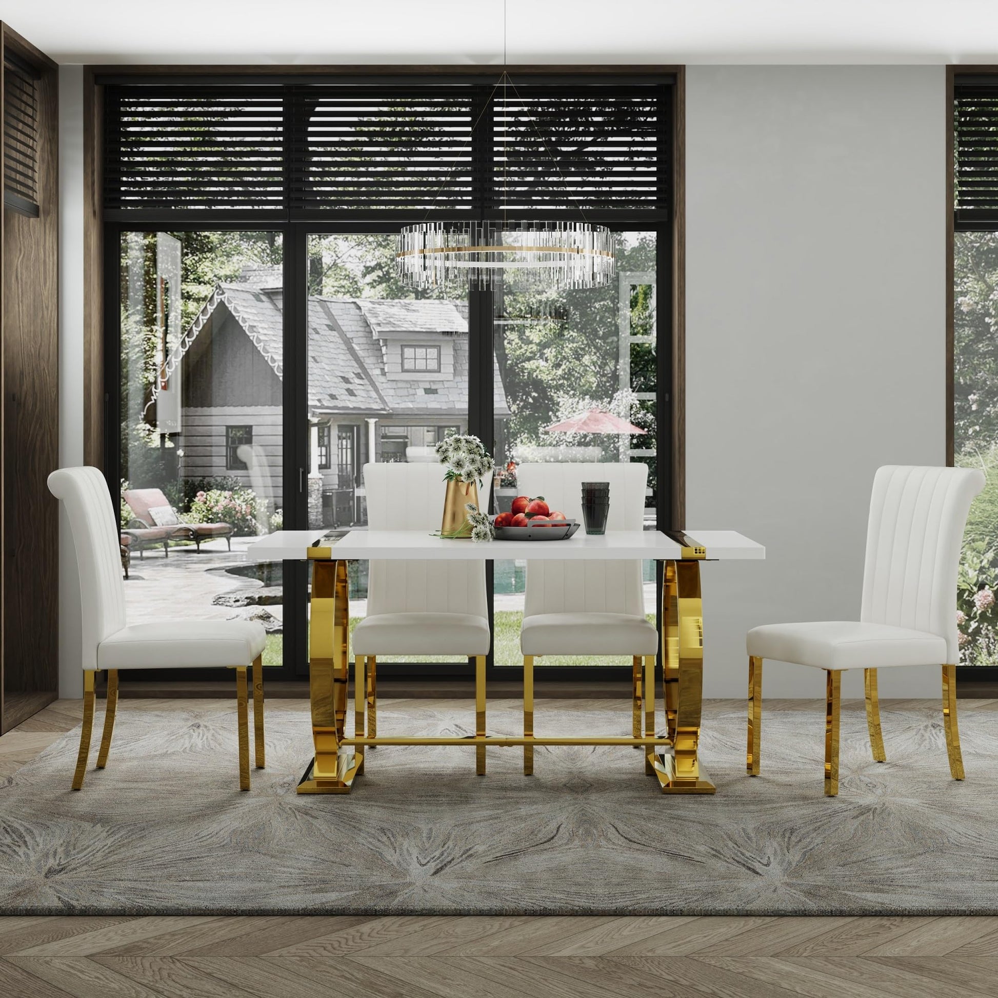 - White & Gold Dining Table: ACEDÉCOR dining table features a luxurious white tabletop paired with polished gold metal legs. Its chic accents and striking silhouette make it a statement piece that enhances any modern decor.