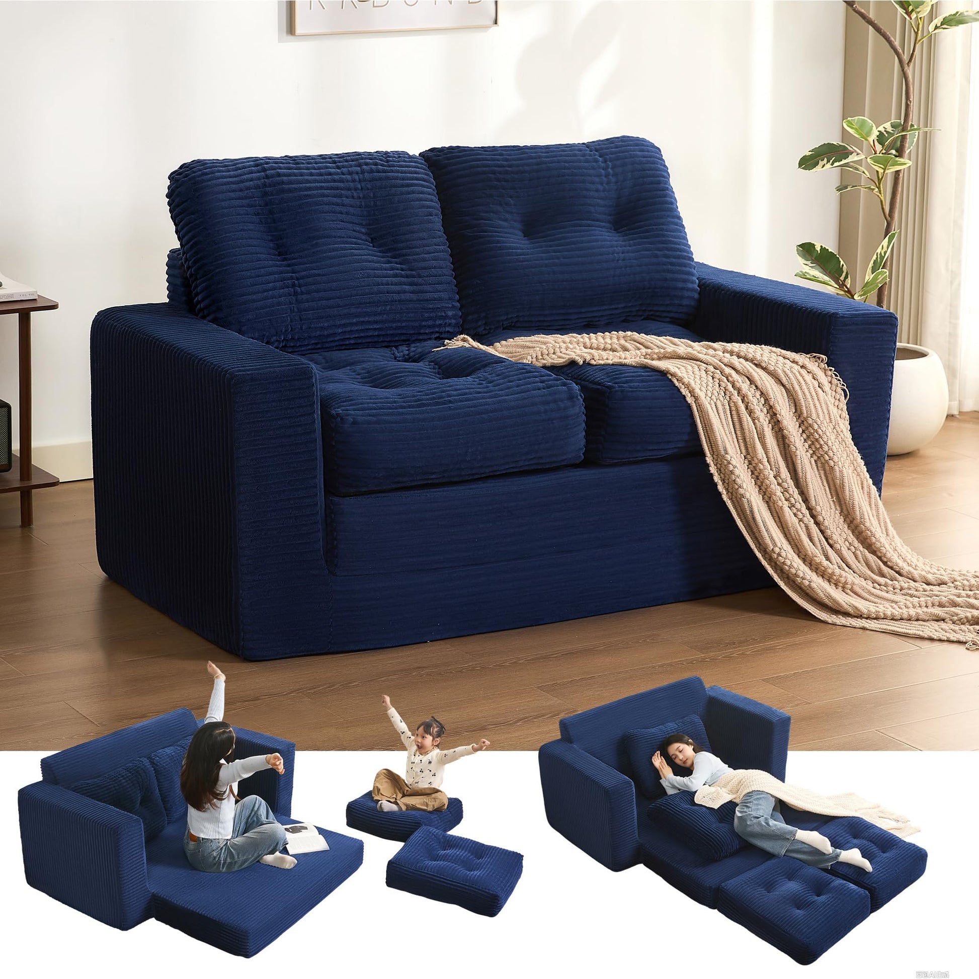Afuson 61" Convertible Sofa Bed, Pull Out Loveseat Sleeper Sofa, 3 in 1 Folding Futon Bed, Fold Out Floor Bed Sofa with Pillows for Living Room Bedroom Lounge Guest Room, Corduroy, Blue