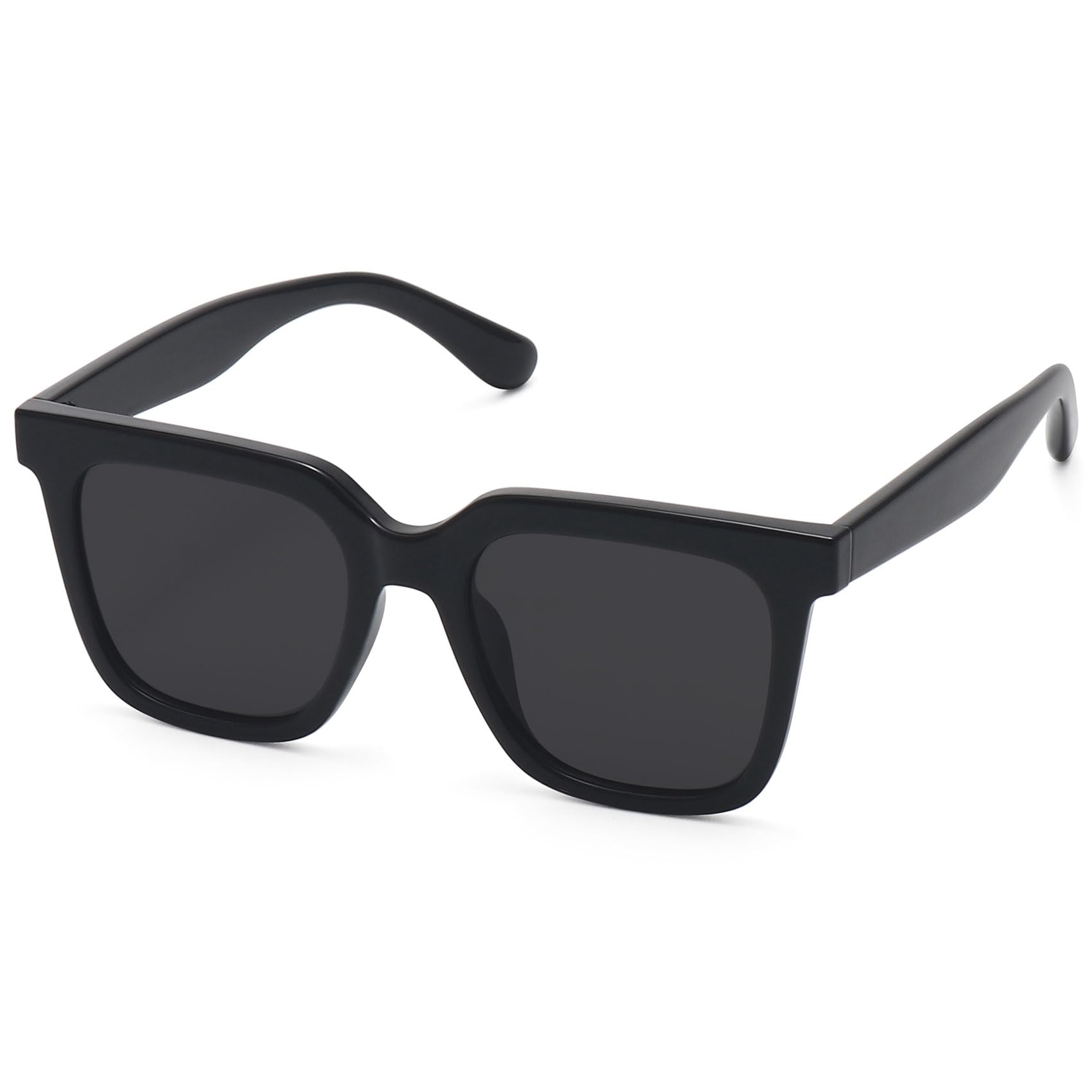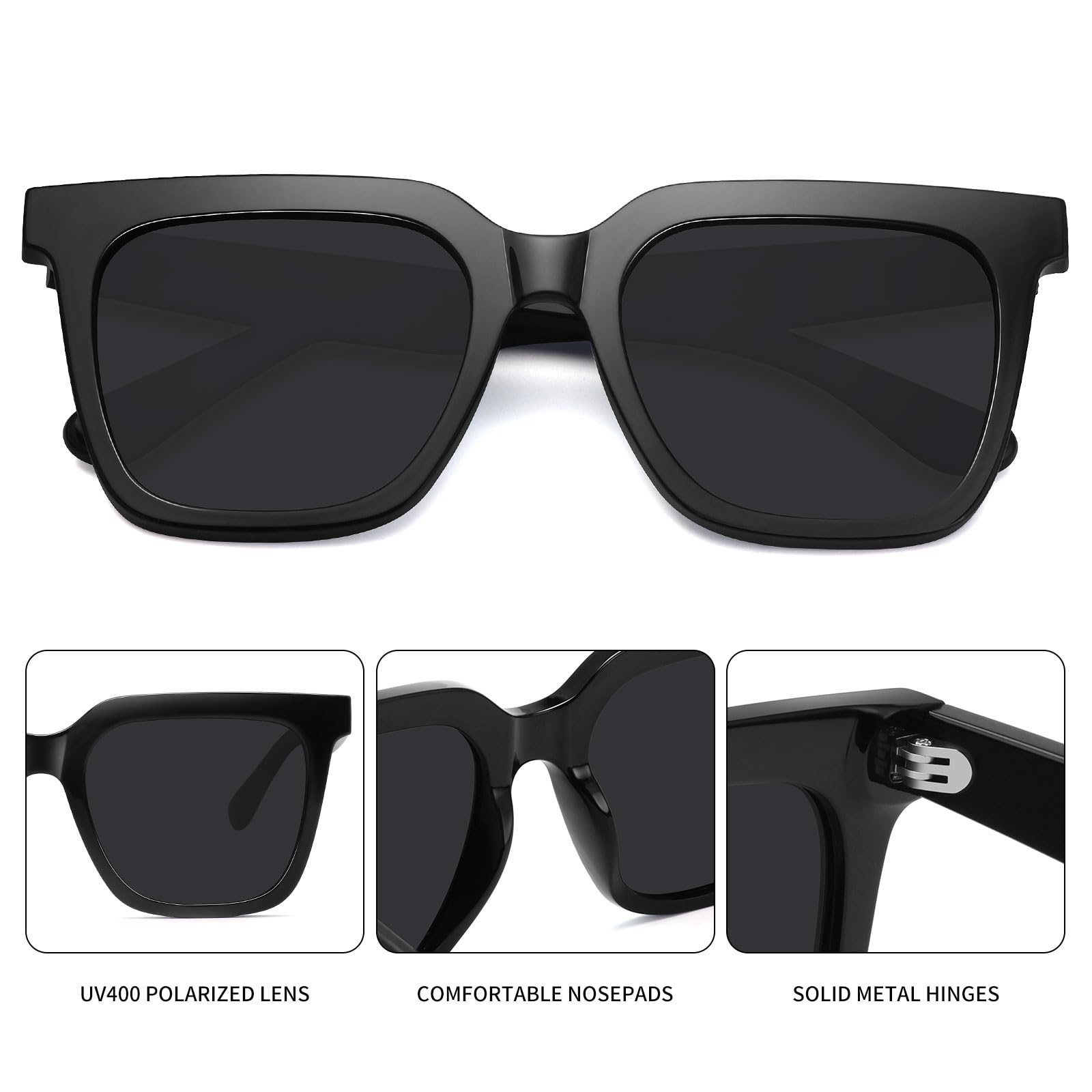 Fozono Large Square Sunglasses Trendy Polarized Sunglasses for Women Men Classic Retro Style UV400 Protection Black