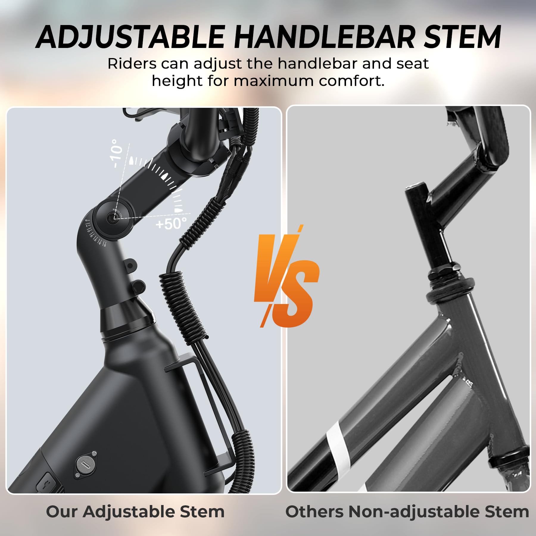 - CUSTOMIZED COMFORT AND SAFETY: The upgraded handlebar stem and saddle enable the rider to adjust the handlebar and seat height for maximum comfort. Funhang electric bicycle with step-thru frame design is ideal for adult women and men riders from 5.3-6.1ft tall. The max load is 300lbs. Equipped with the front suspension fork to reduce bumps, dual disc brakes to provide powerful braking force, and a bright headlight illuminates the road ahead to ensure ultimate safety and comfort.