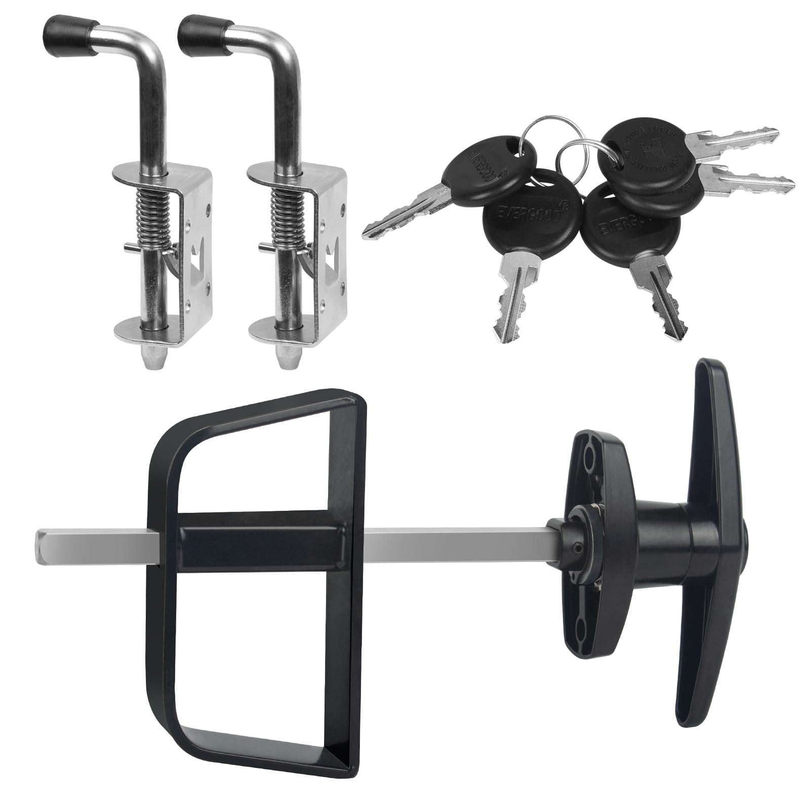 Hurrikom Shed Door Latch Kit with 5-1/2" Stem T-Handle Lock, 5 Keys and 2 Packs Spring Loaded Latch Hardware - Ideal for Sheds, Playhouses, Chicken Coops, RVs, Garages