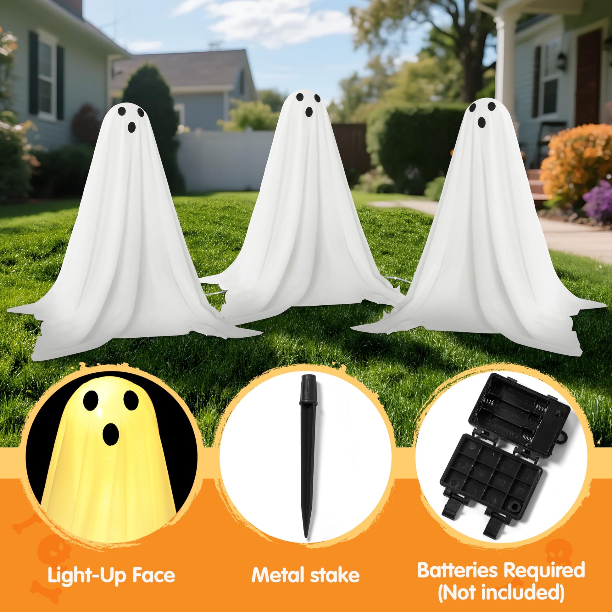 - Super Value Pack: This value pack includes 3 little ghost ground plugs dressed in white, each 18 inches tall ensures high visibility across lawns, gardens, or pathways. It's perfect as a large Halloween horror yard sign display, or paired with Halloween props like inflatable ghosts. You can line your entire walkway for a spooky effect!