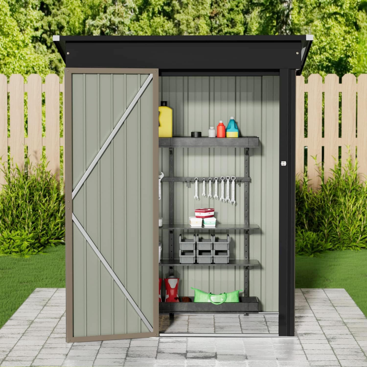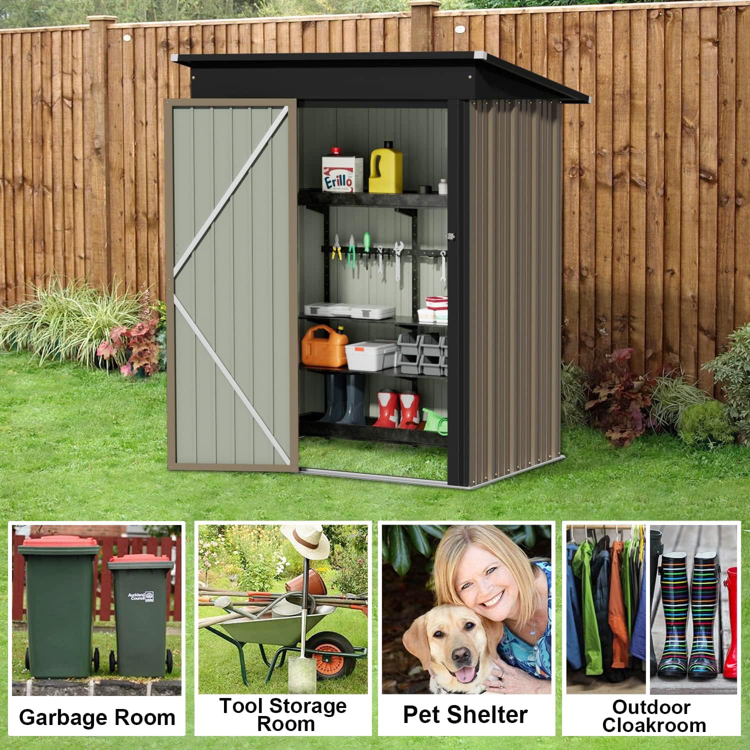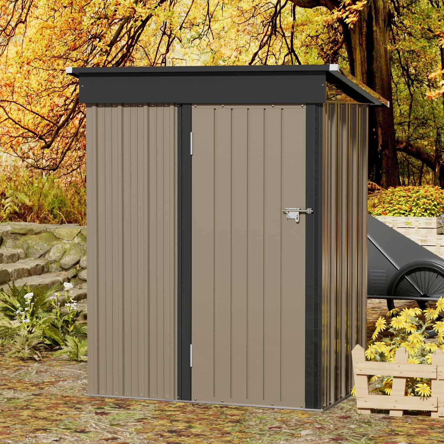 JUMMICO Metal Outdoor Storage Shed 5 x 3 FT Metal Shed with Lockable Door,Waterproof Garden Tool Shed Storage House for Backyard Patio Lawn, Brown