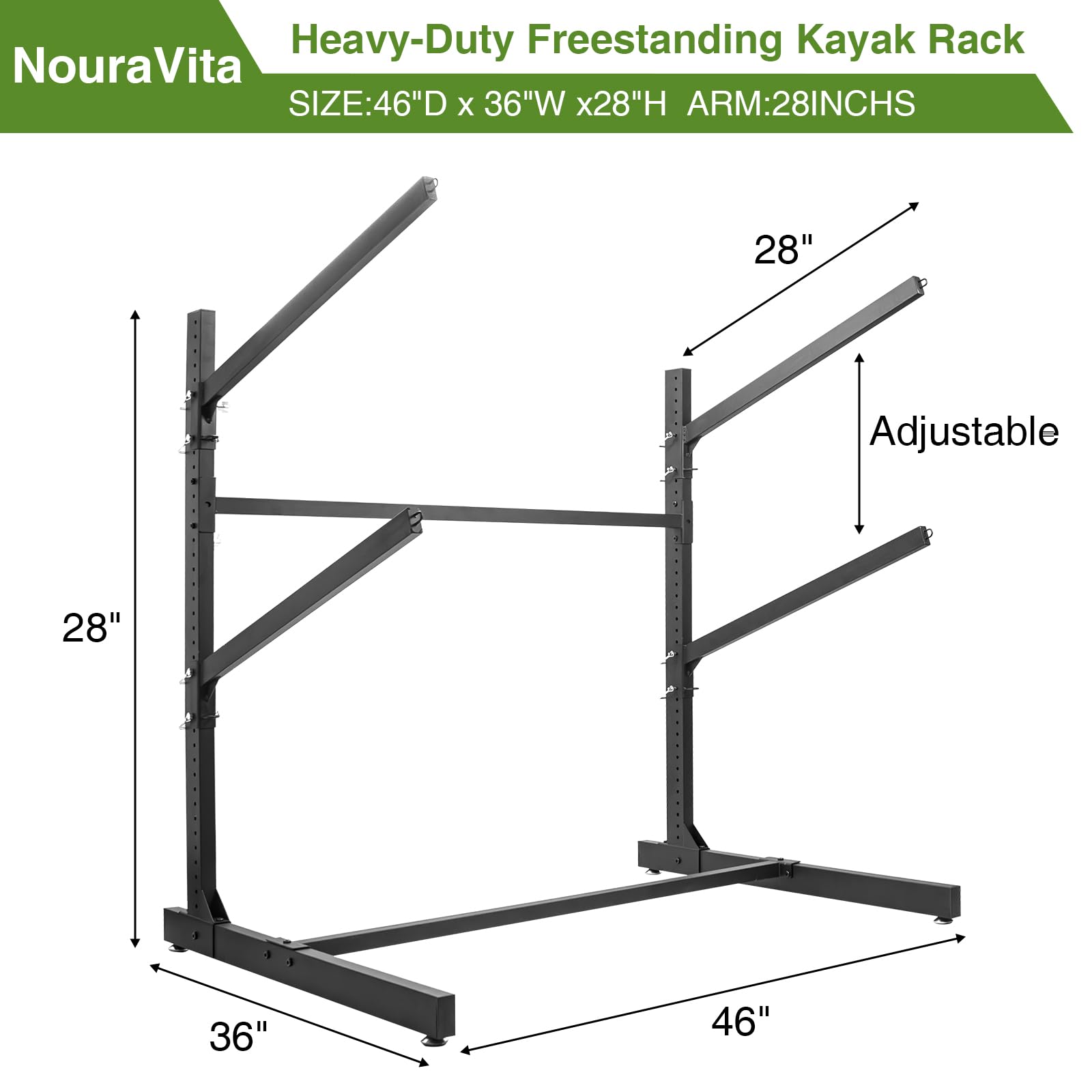 - Kayak Storage: NouraVita kayak storage rack is designed to optimize your garage,boat dock or outdoor storage area,maximize your space.Get your kayaks, canoes, paddle boards, and surfboards off the floor and neatly organized.Free up valuable space and prevent damage from clutter.