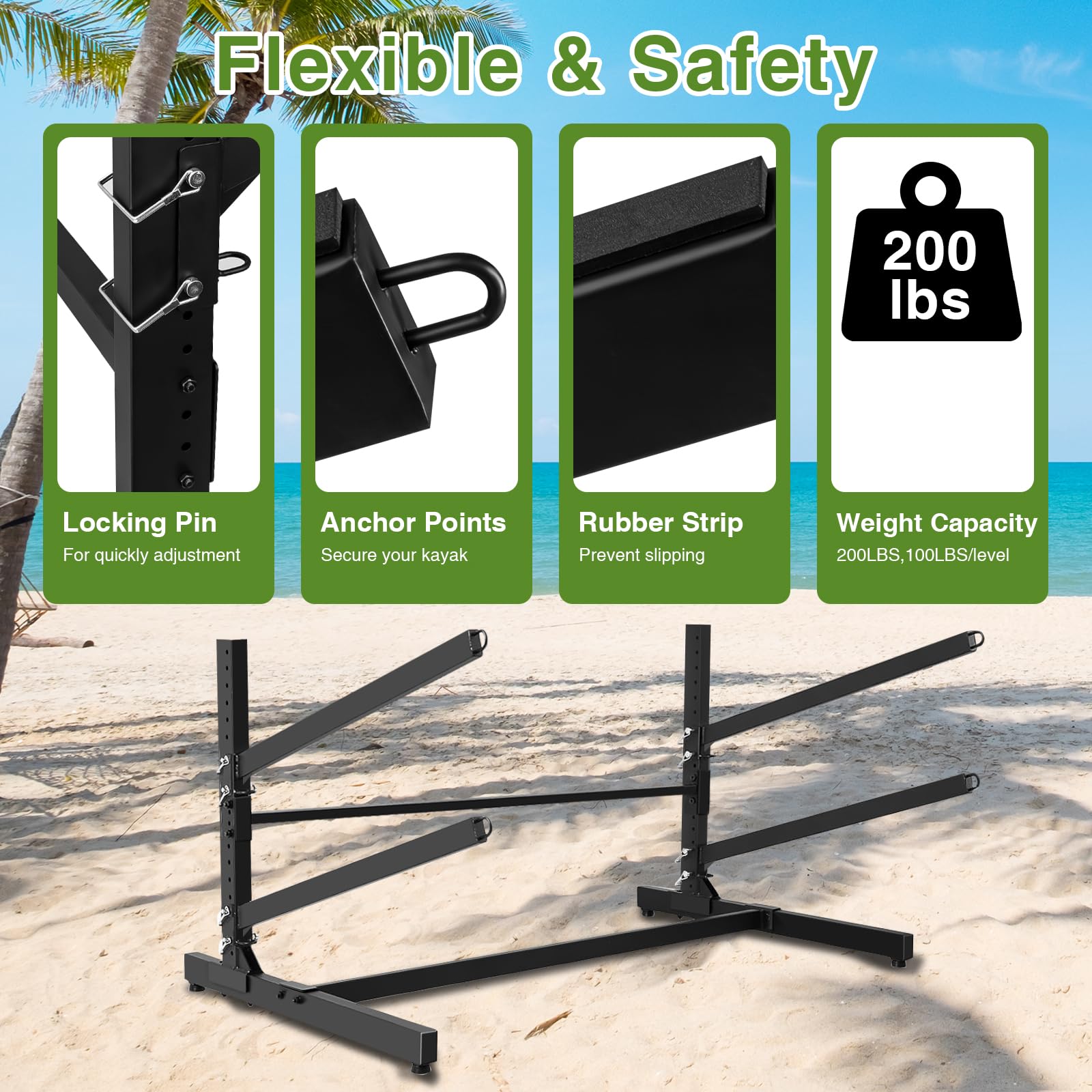 - Heavy Duty: Built to last! This kayak rack is constructed from robust powder-coated steel. Each level supports up to 100 lbs, up to 200 lbs total,making it ideal for a variety of kayaks and other watercraft.