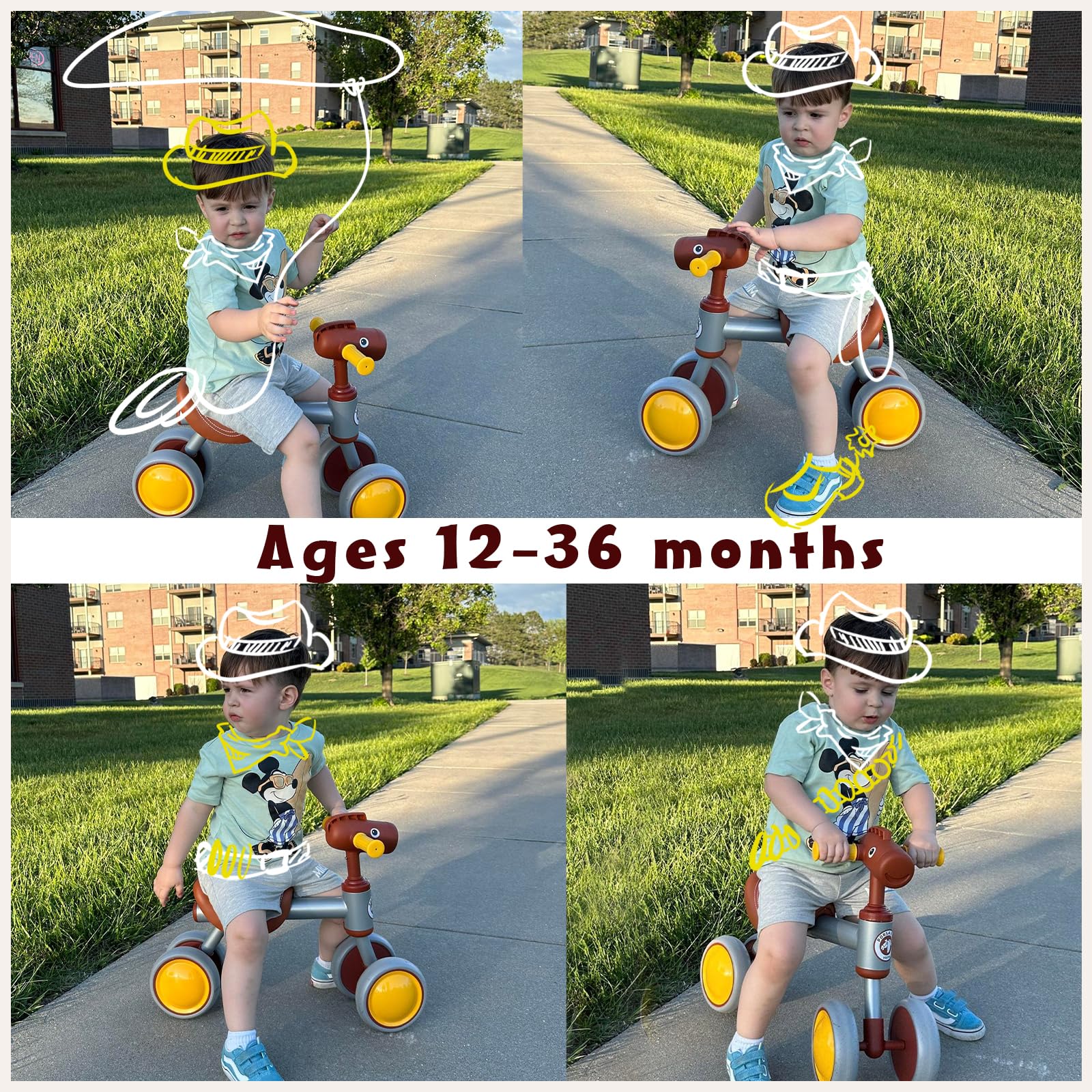 PerKidern Baby Balance Bike for 1-2 Year Old Boy Girl, Unique Horse Design, for 12-24 Months, 4 Wheels Toddler Balance Bike, Baby Bike 1+ Years Boys & Girls First Birthday Gifts