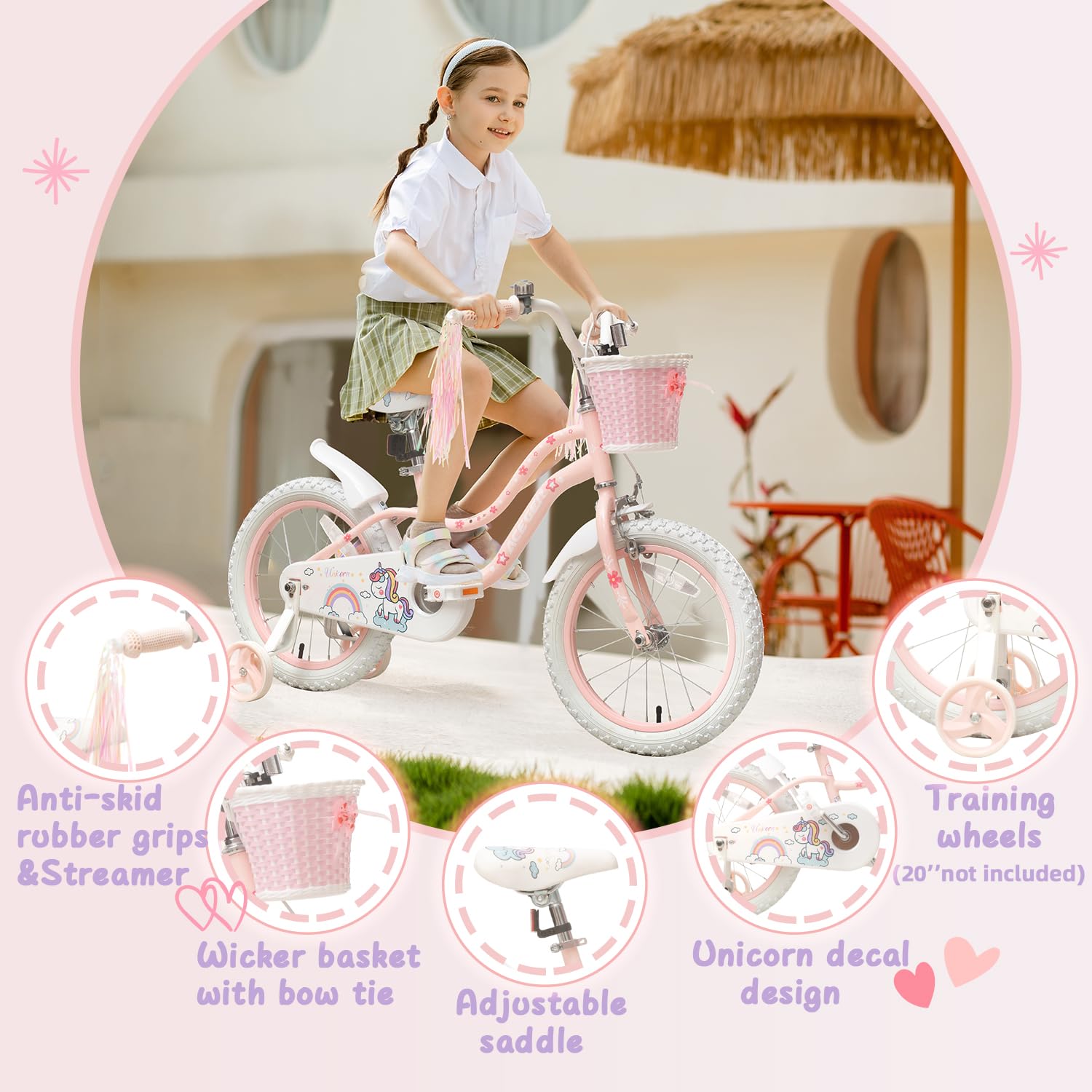 Princess Style Girls Bike with Basket for 2-13 Years Old Kids and Toddlers, 12 14 16 18 Inch Bicycle for Children with Training Wheels and Streamers, 20 Inch with Kickstand, Multiple Colors