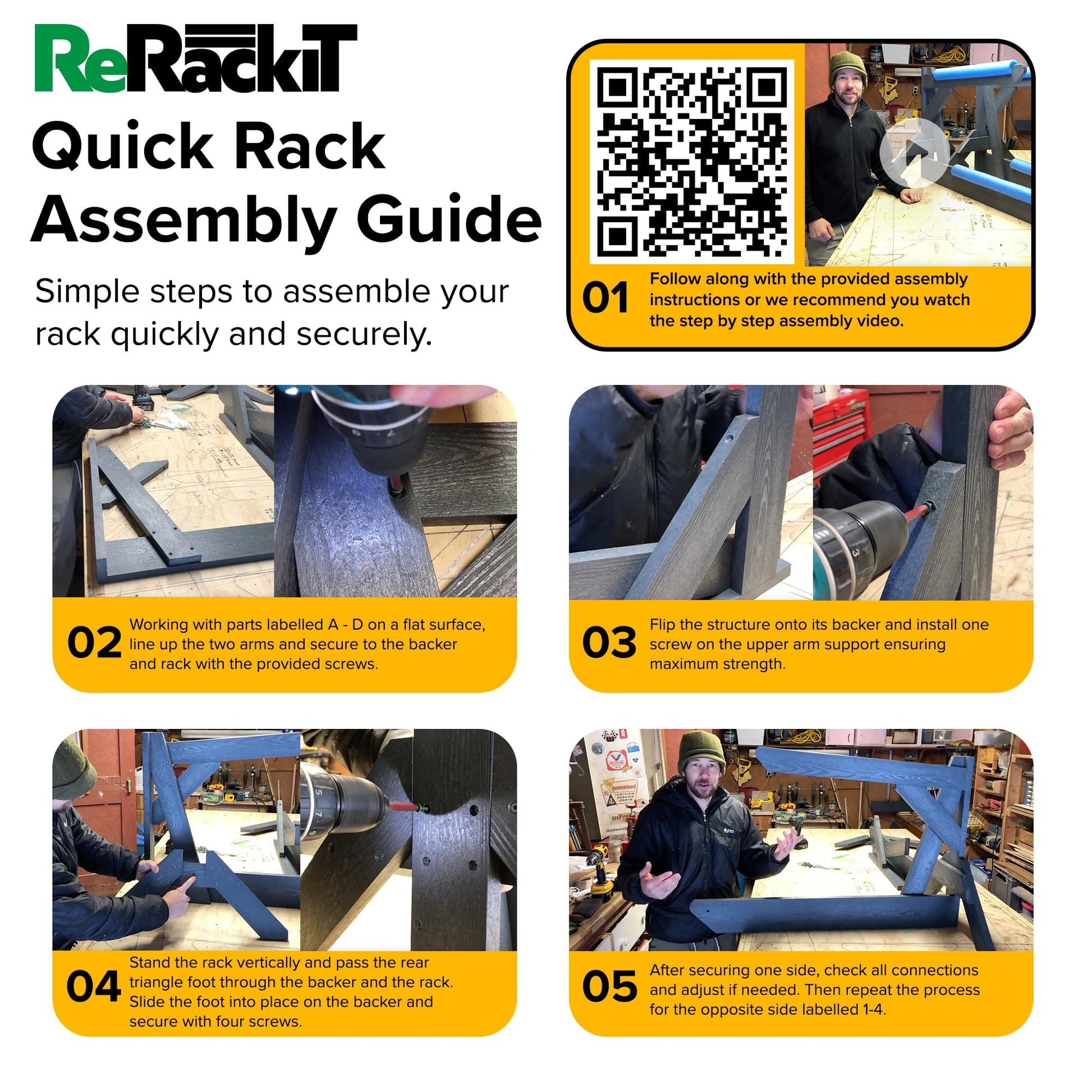 - 【Easy Assembly, Expert Support】Get ready to enjoy a hassle-free kayak rack for garage, outdoor and indoor use with your new ReRackiT poly kayak rack! While some assembly is required, we make it simple with our easy-to-follow step-by-step video guide. Need a hand? Our friendly support team is just a message away. Let’s get you set up and storing like a pro in no time!