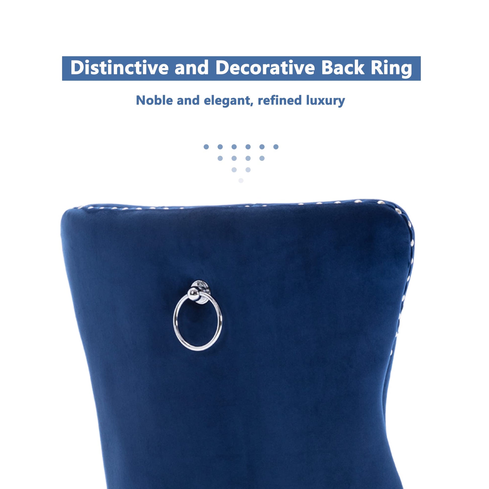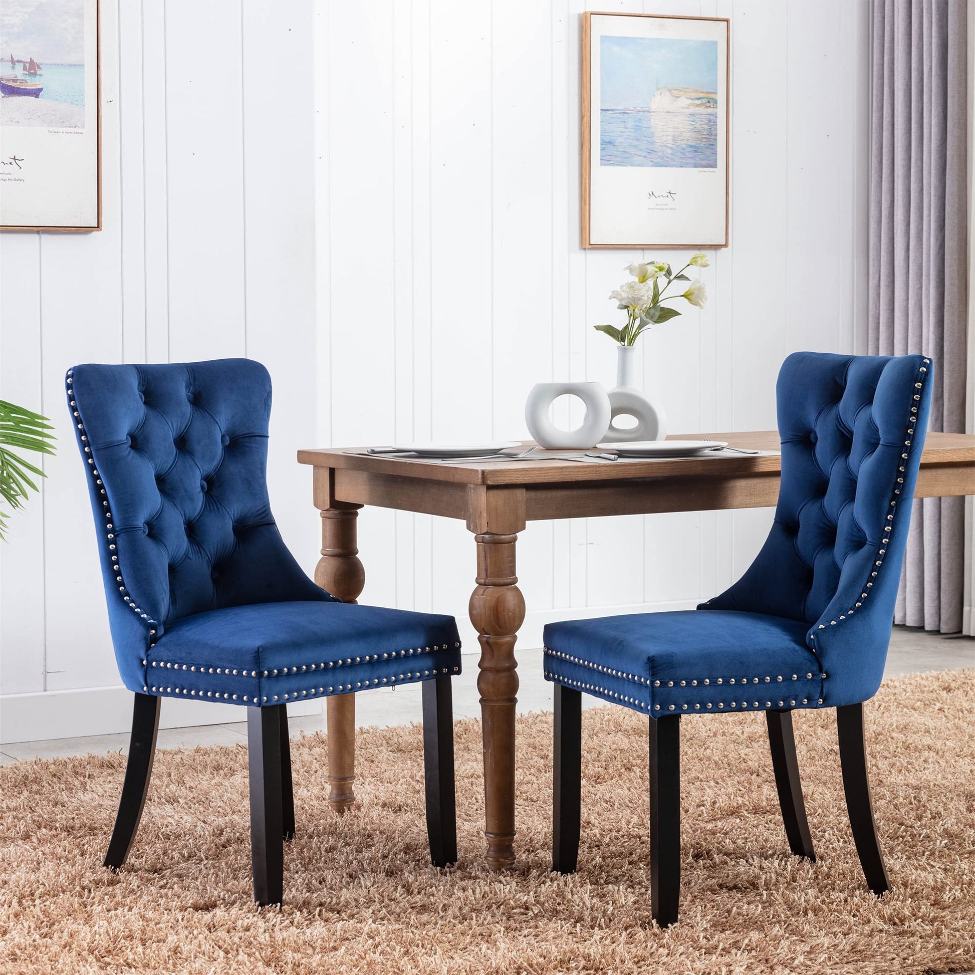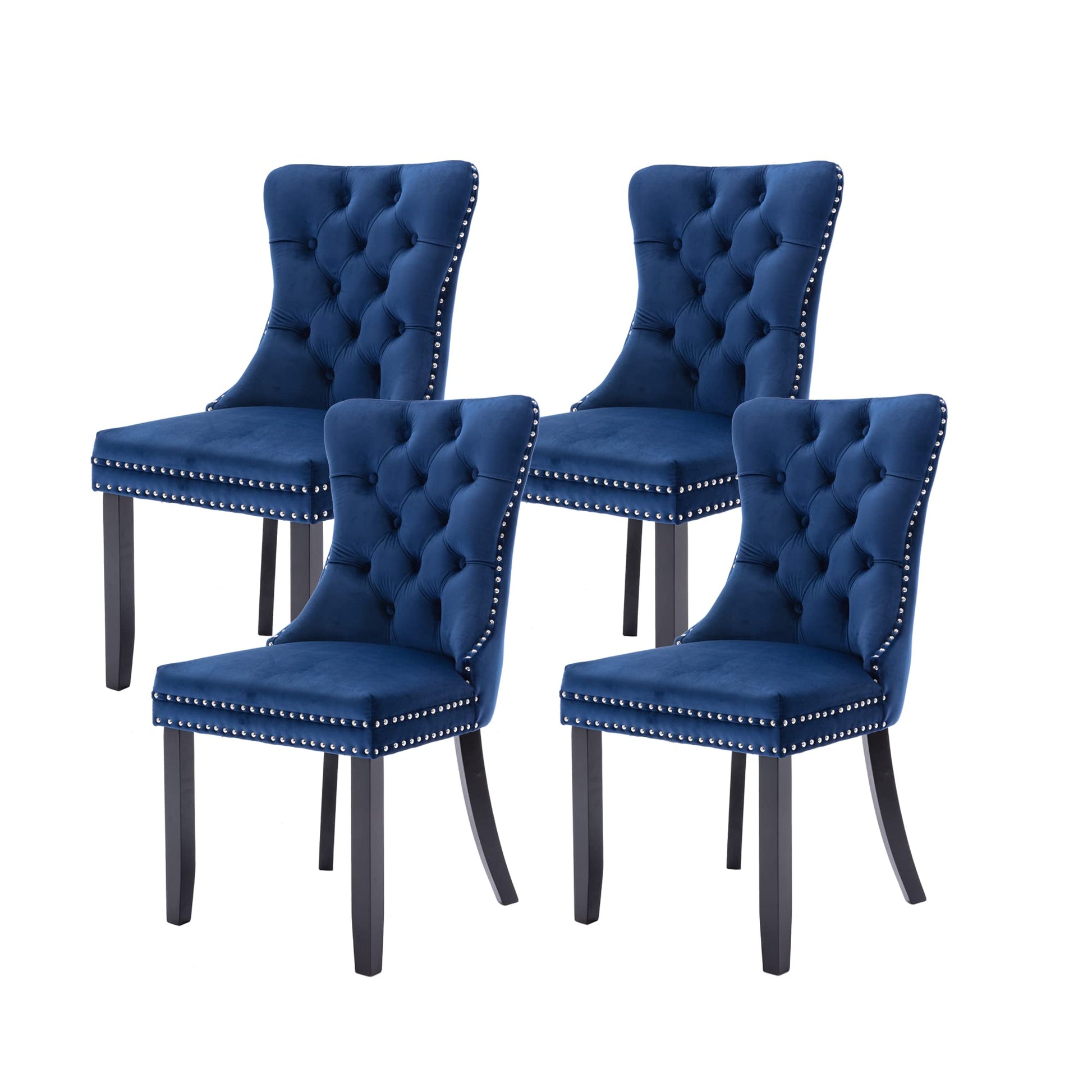 Virabit Blue Dining Chairs Set of 4, Velvet Tufted with Nailhead Back and Ring Pull Trim, Upholstered for Kitchen/Bedroom/Dining Room