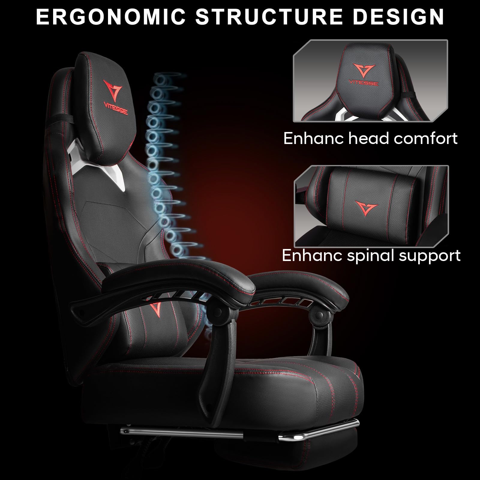 VITESSE Big and Tall Gaming Chair 400lb Weight Capacity with Footrest, Ergonomic Video Game Chair for Adults with Oversized Headrest and Lumbar Pillow, Computer Chair Gaming for Office (Black+Red)