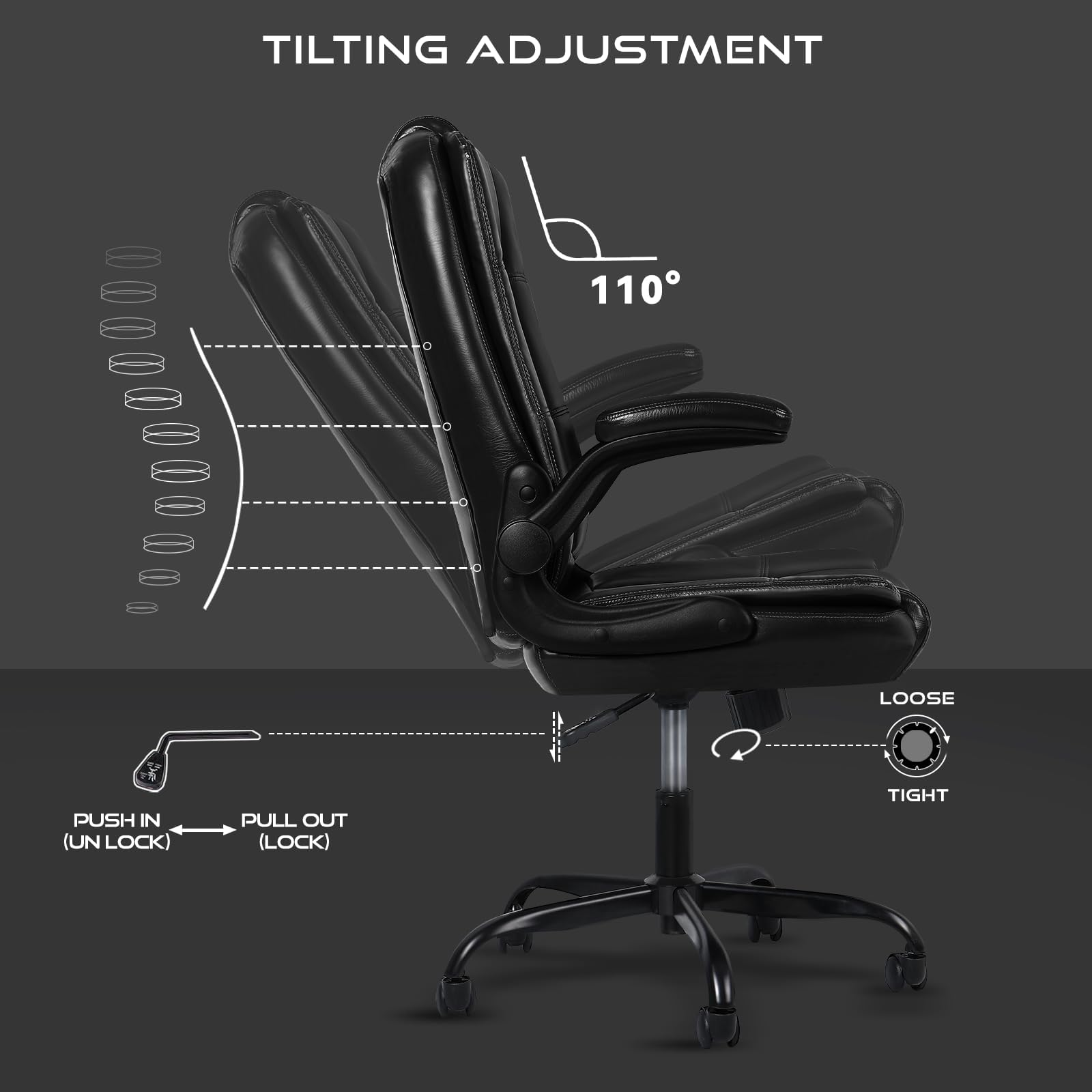 - 【FLIP-UP ARMRESTS】- The flip-up armrests provide added flexibility, allowing you to easily move in and out of the chair or adjust your seating position as needed. This Heavy and Duty chair can be tucked away into the sitting area, saving you tons of space in your office environment.