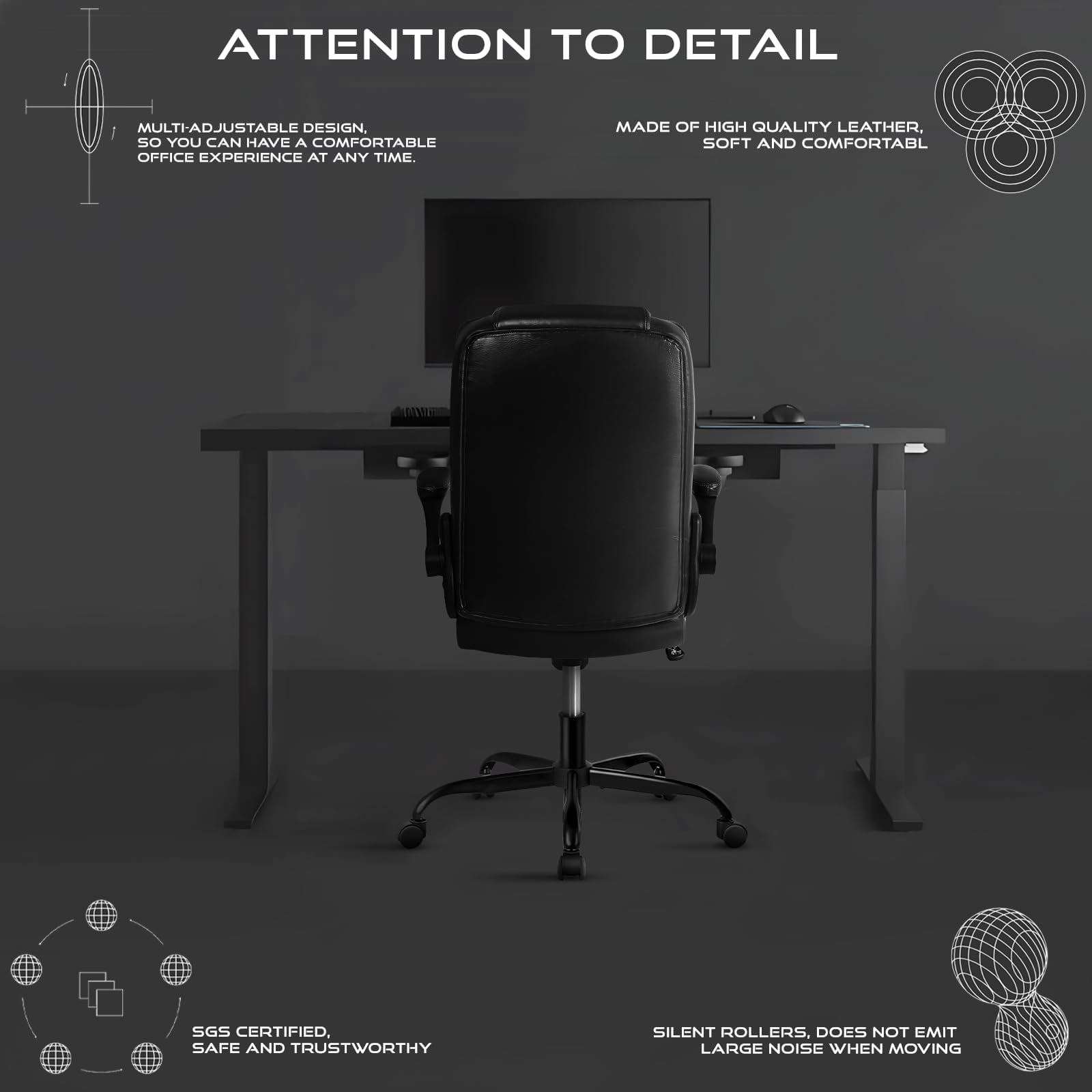 - 【LEATHER EXECUTIVE CHAIR】 - This black leather ergonomic office chair combines functionality and style, making it perfect for both office and home use. The smooth leather not only enhances the overall aesthetic but also ensures durability and easy maintenance.