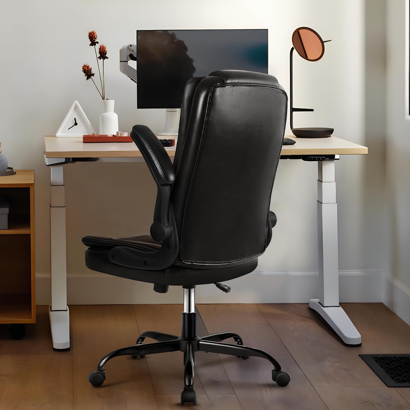 VITESSE Ergonomic Office Chair with Flip-up Armrests, Big and Tall Leather Executive Office Chair, High Back Lumbar Support Home Computer Desk Chair, Heavy and Duty Computer Chair (Black)
