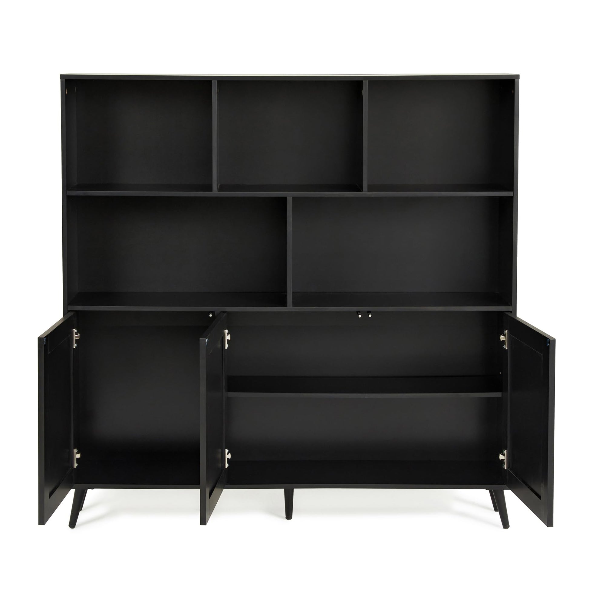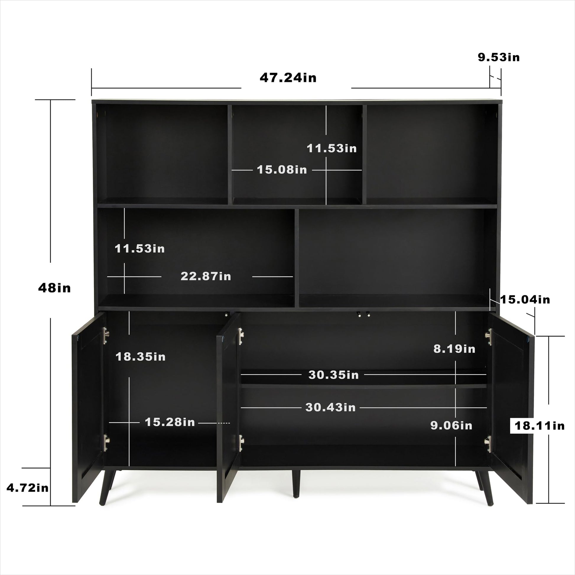 VitoEone Bookcase, Tall Bookshelf Bookcase with Doors, Book Shelves Book Shelf for Bedroom, Black Bookshelf Cabinet with Storage, Book Cases Display Cabinet Bookshelves for Home Office, Living Room